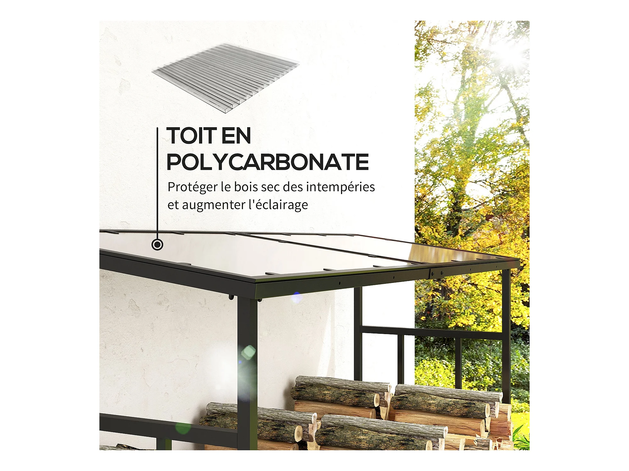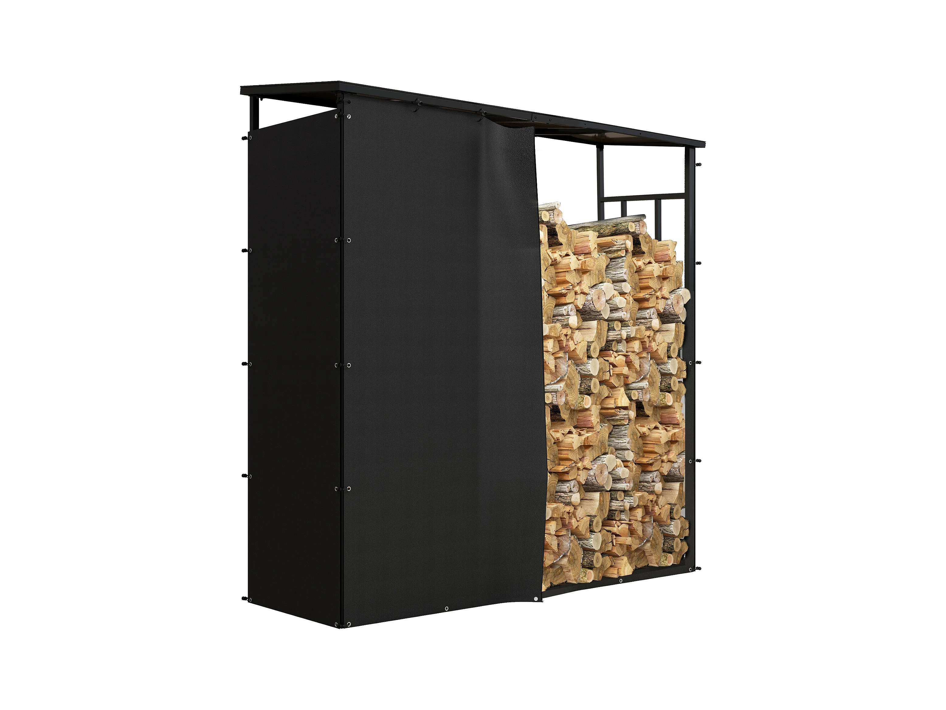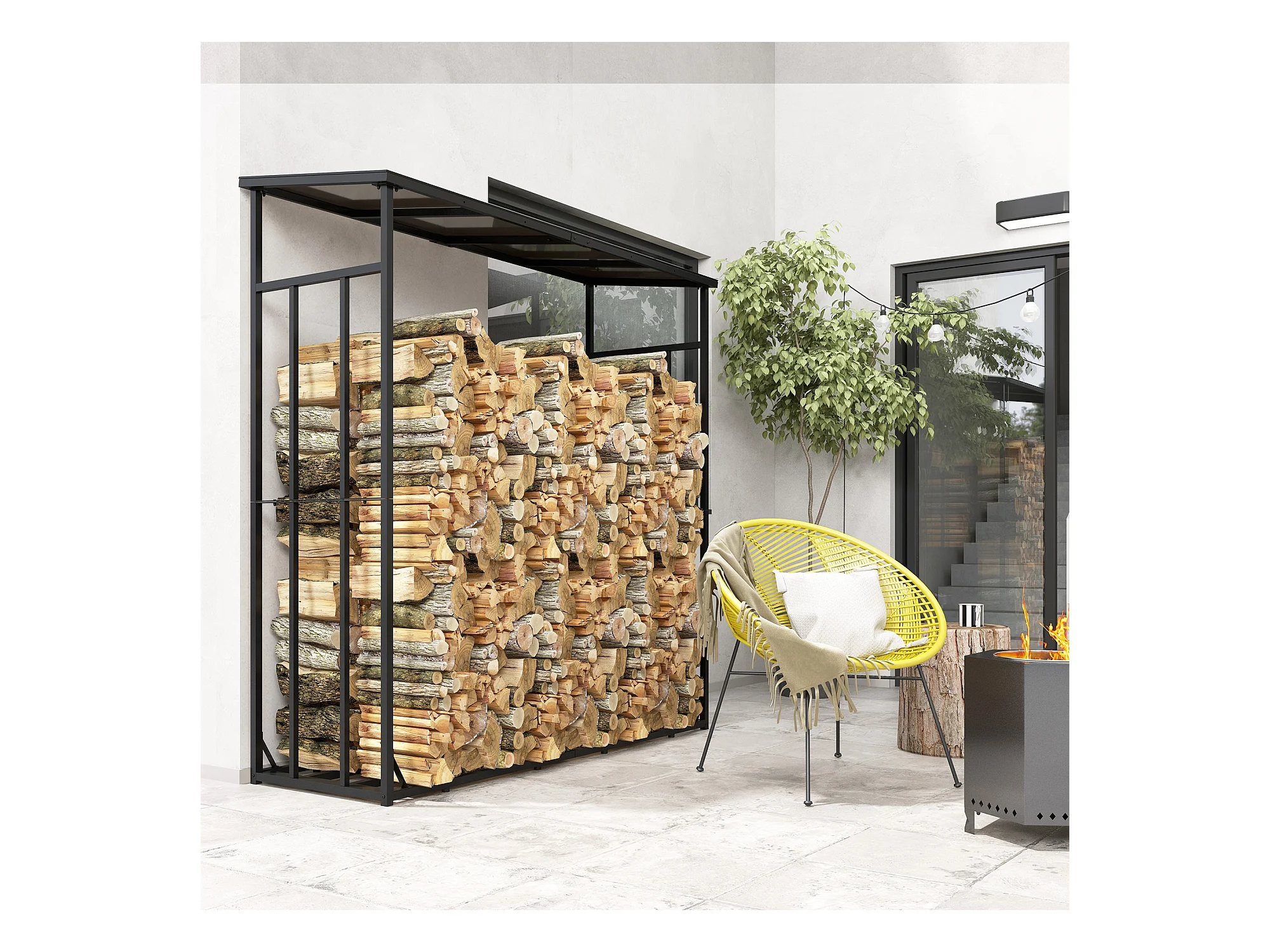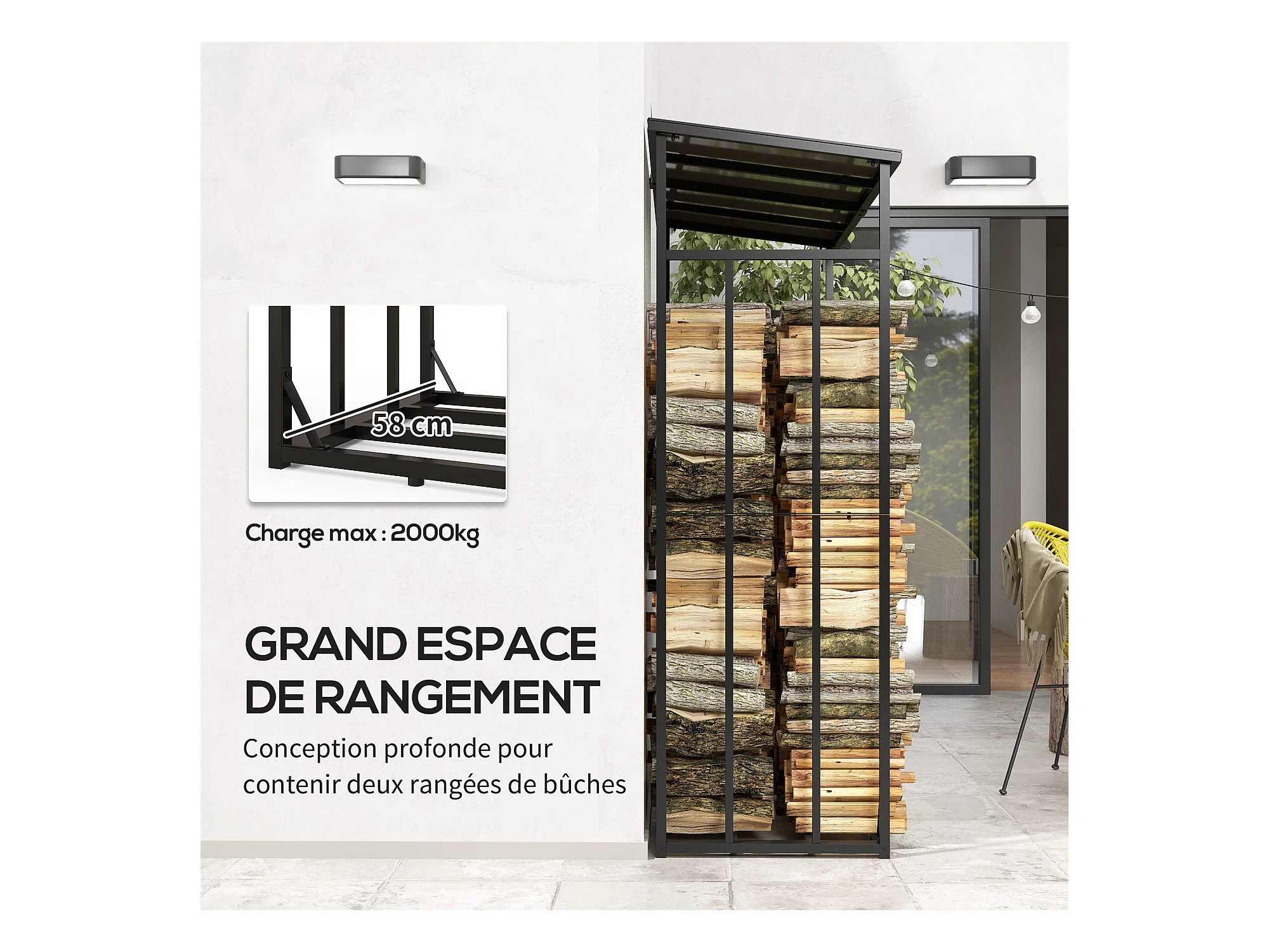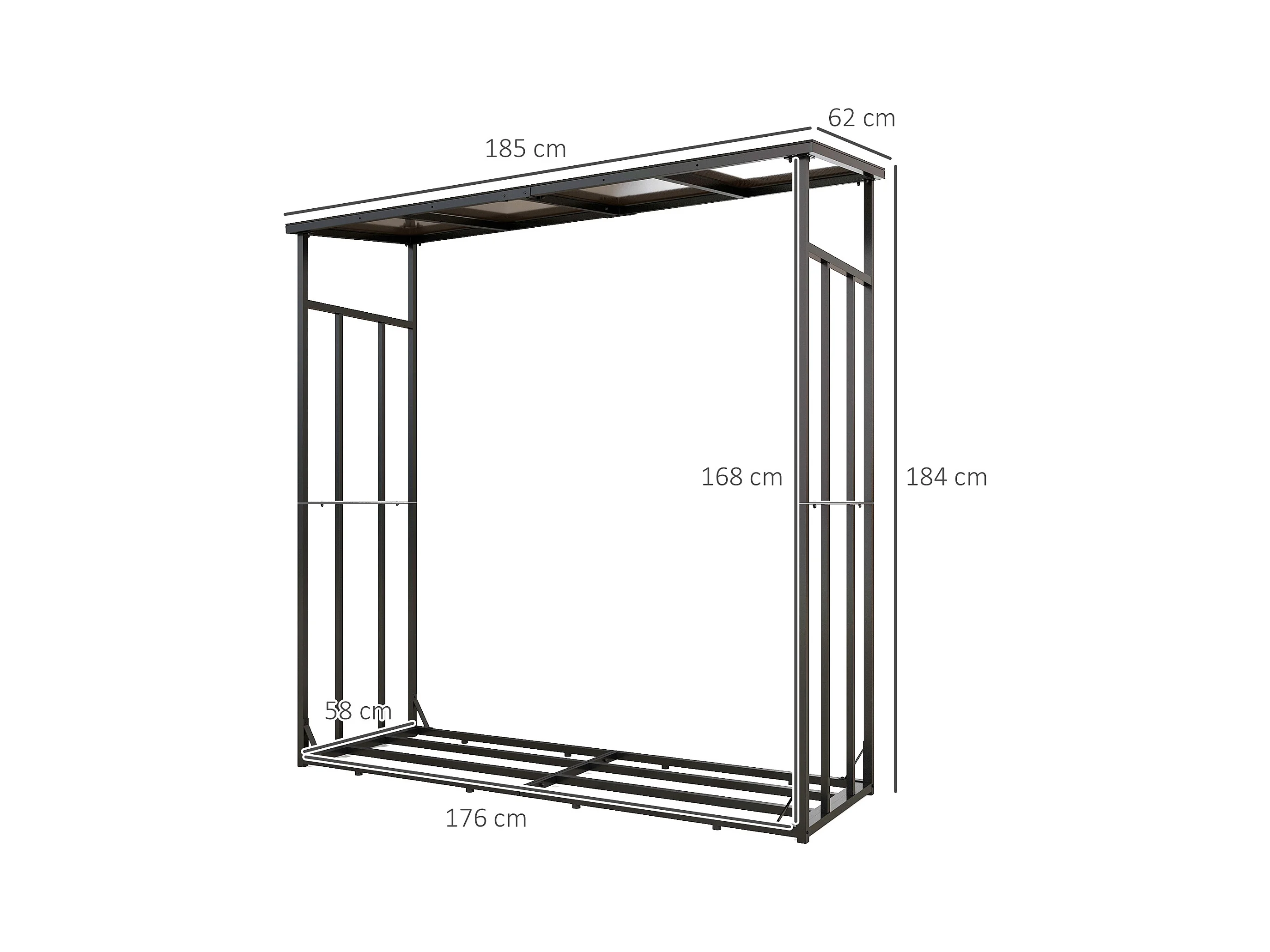 Abri bûches range bûches avec toit - 4 housses incluses - charge max. 2T - dim. 185L x 62l x 184H cm - métal noir