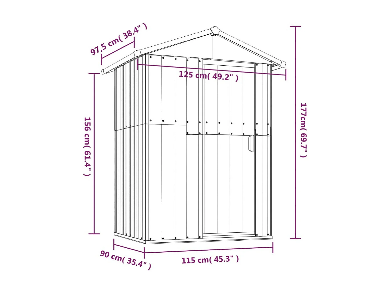 Abri de jardin cabane grise 126 x 97.5 x 177 cm 02_0022229