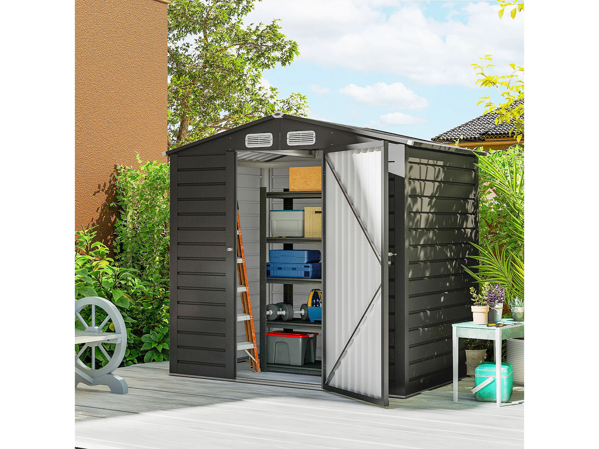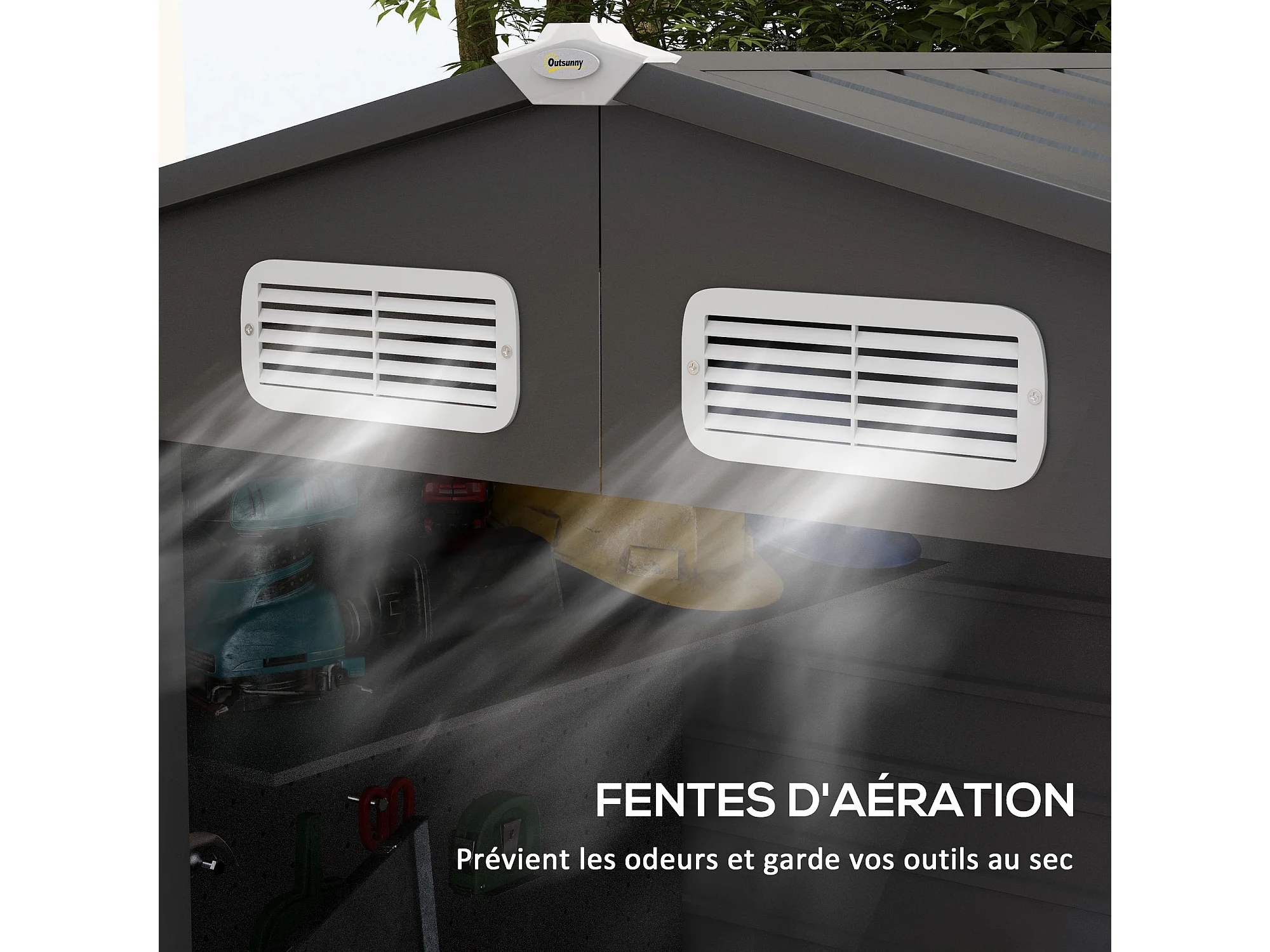 Abri de jardin cabanon dim. 190L x 131l x 188H cm porte verrouillable ventilations tôle acier ondulé gris