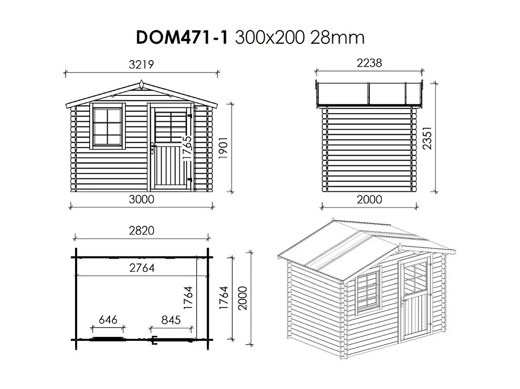 Abri de jardin en bois - 3x2 m + terrasse avec balustrade et avant-toit en bois - 15 m2 - DOM472+DOM394+DOM395+POD04 - ALTANKA