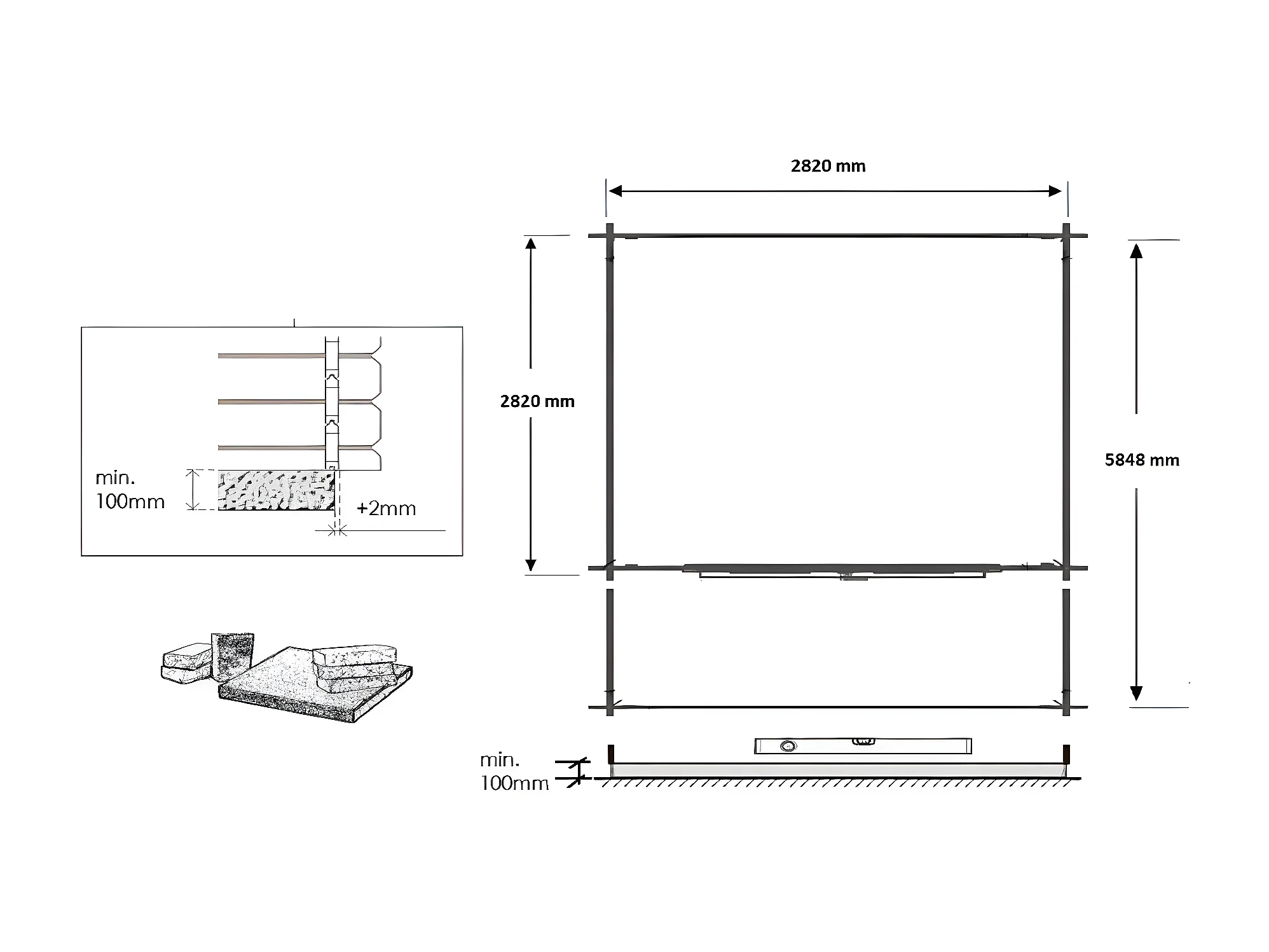 Abri de jardin en bois - 3x3 m + terrasse avec balustrade et avant-toit en bois - 18 m2 - DOM530+DOM394+DOM395+POD04 - ALTANKA
