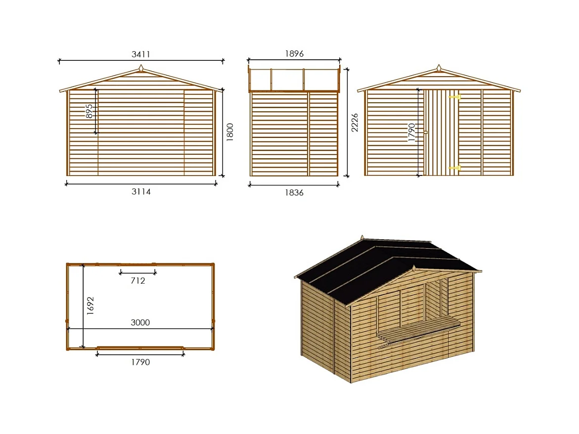 Kiosque/ stand de marché/ de vente 5.72 m2 - 3.11x1.84 m - 19 mm - DOM606 - ALTANKA