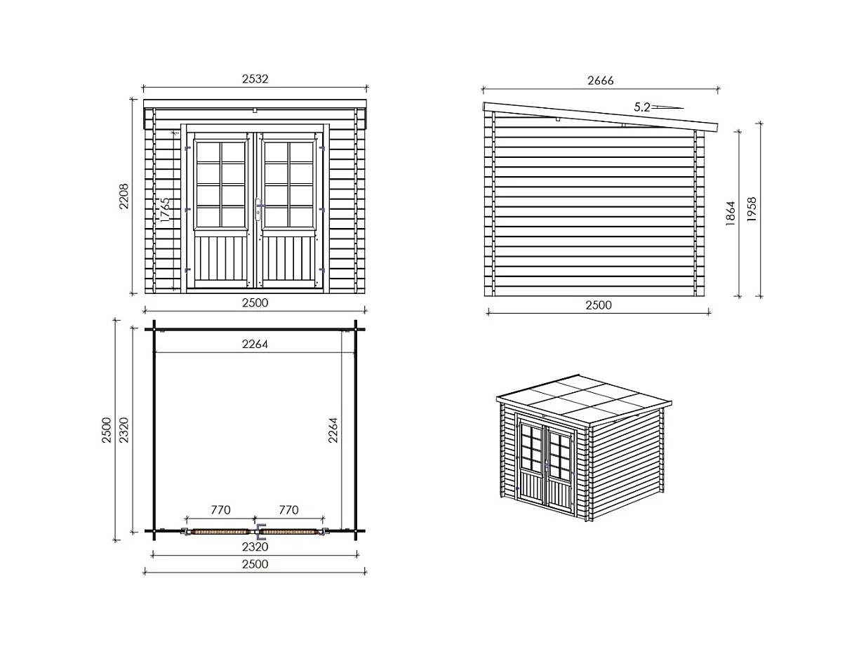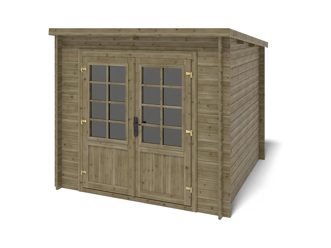 Abri de jardin en bois - 6.25m2 - 2.5x2.5m - Traité - Ep. 28mm - Couleur: vert - DOM724 - ALTANKA