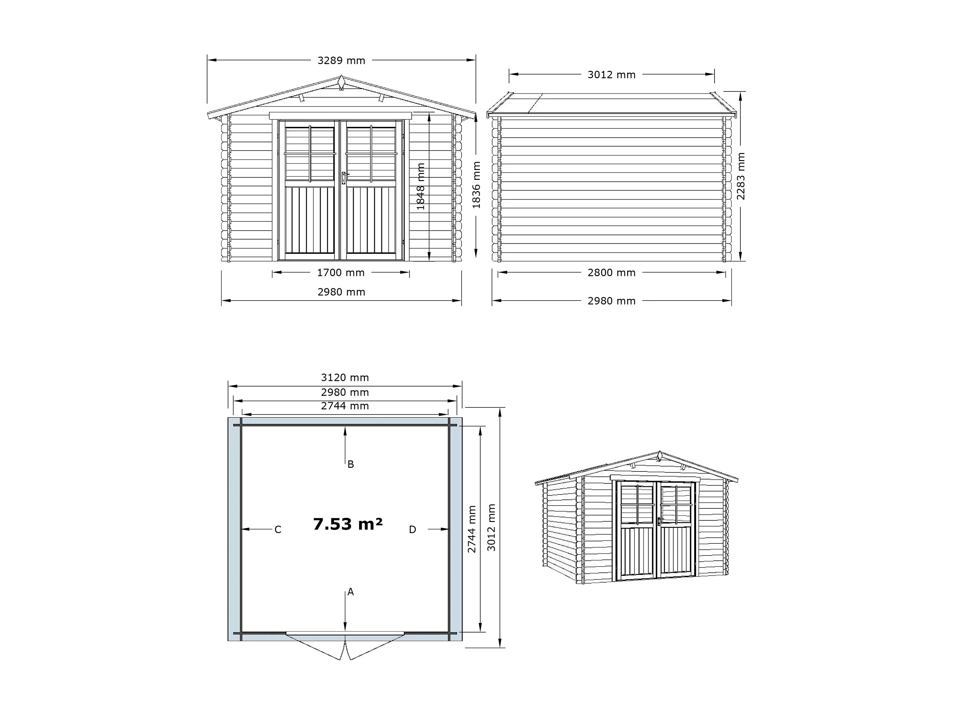 Abri de jardin en bois traité par autoclave 9,91 m² épaisseur 28 mm - HORTUSA