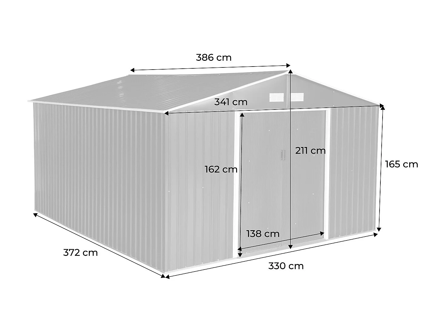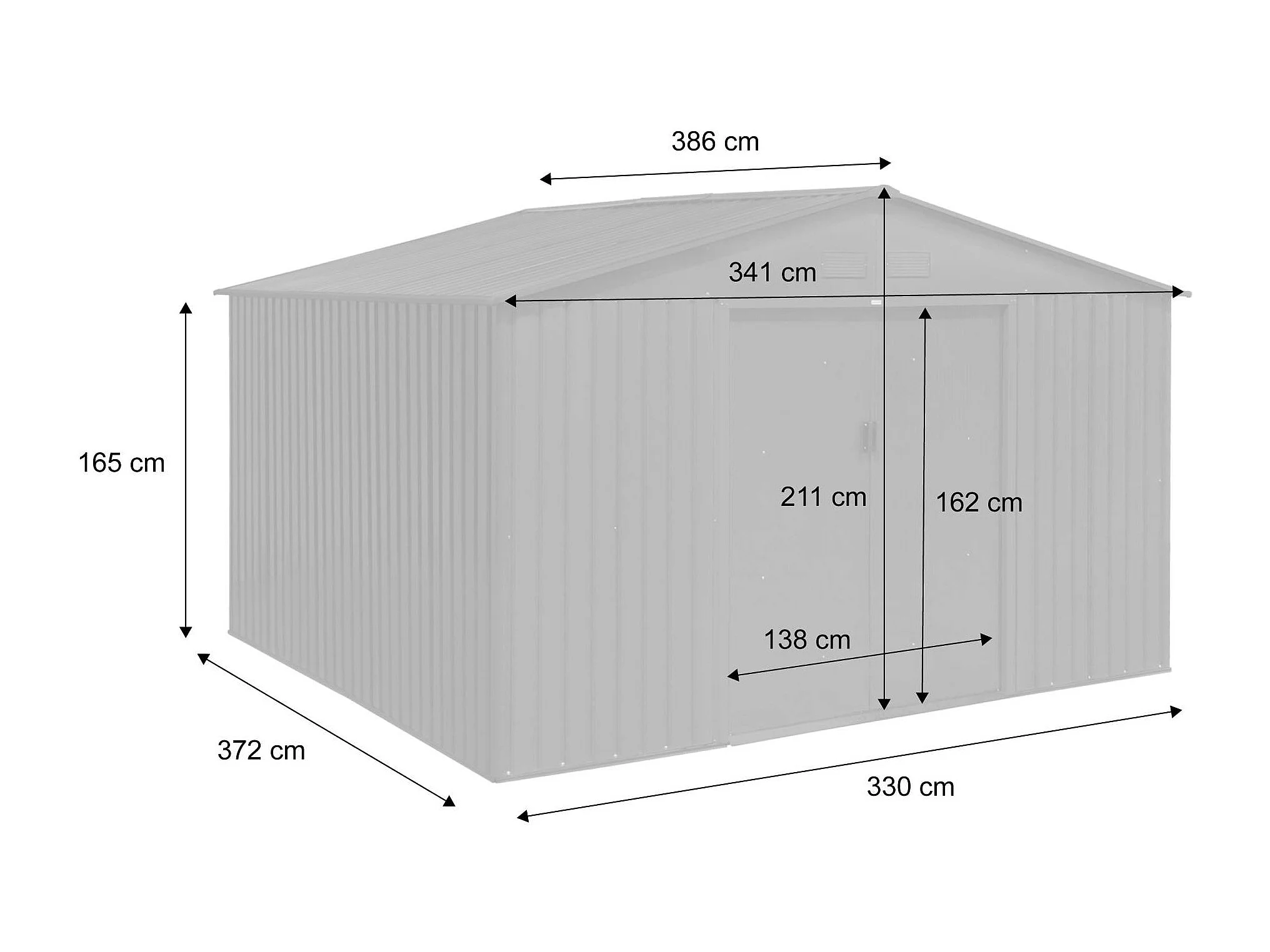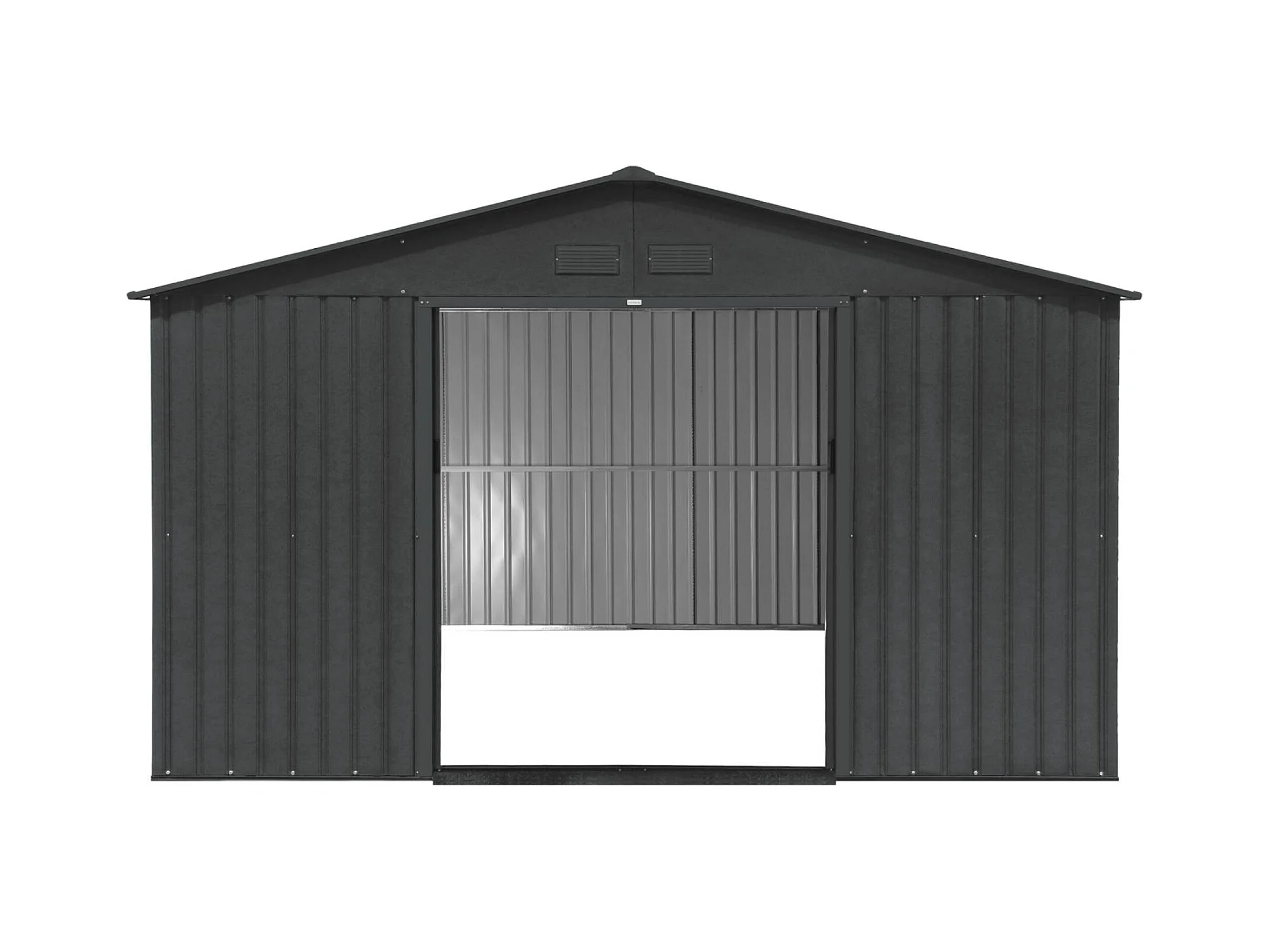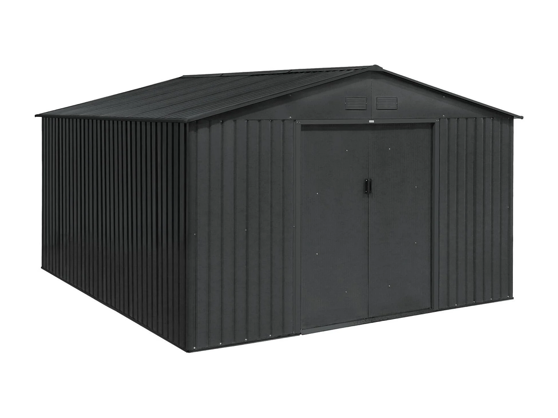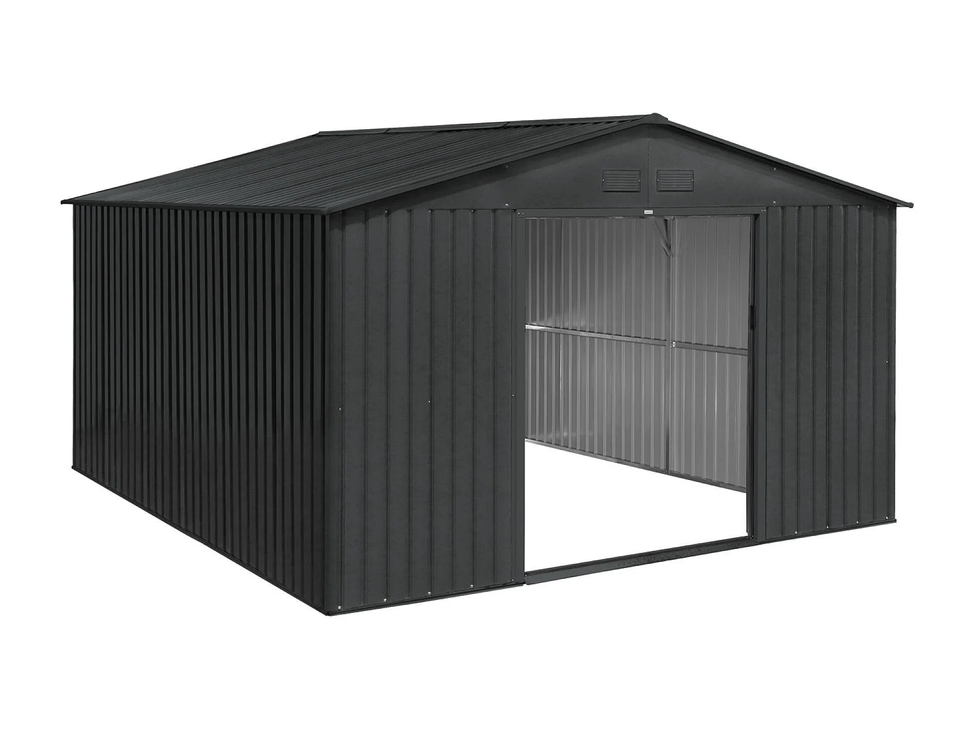 Abri de jardin en métal - Slack - 12.99 m² anthracite - Deux portes coulissantes. kit de fixation sol inclus. L 341 x 386 x 211cm