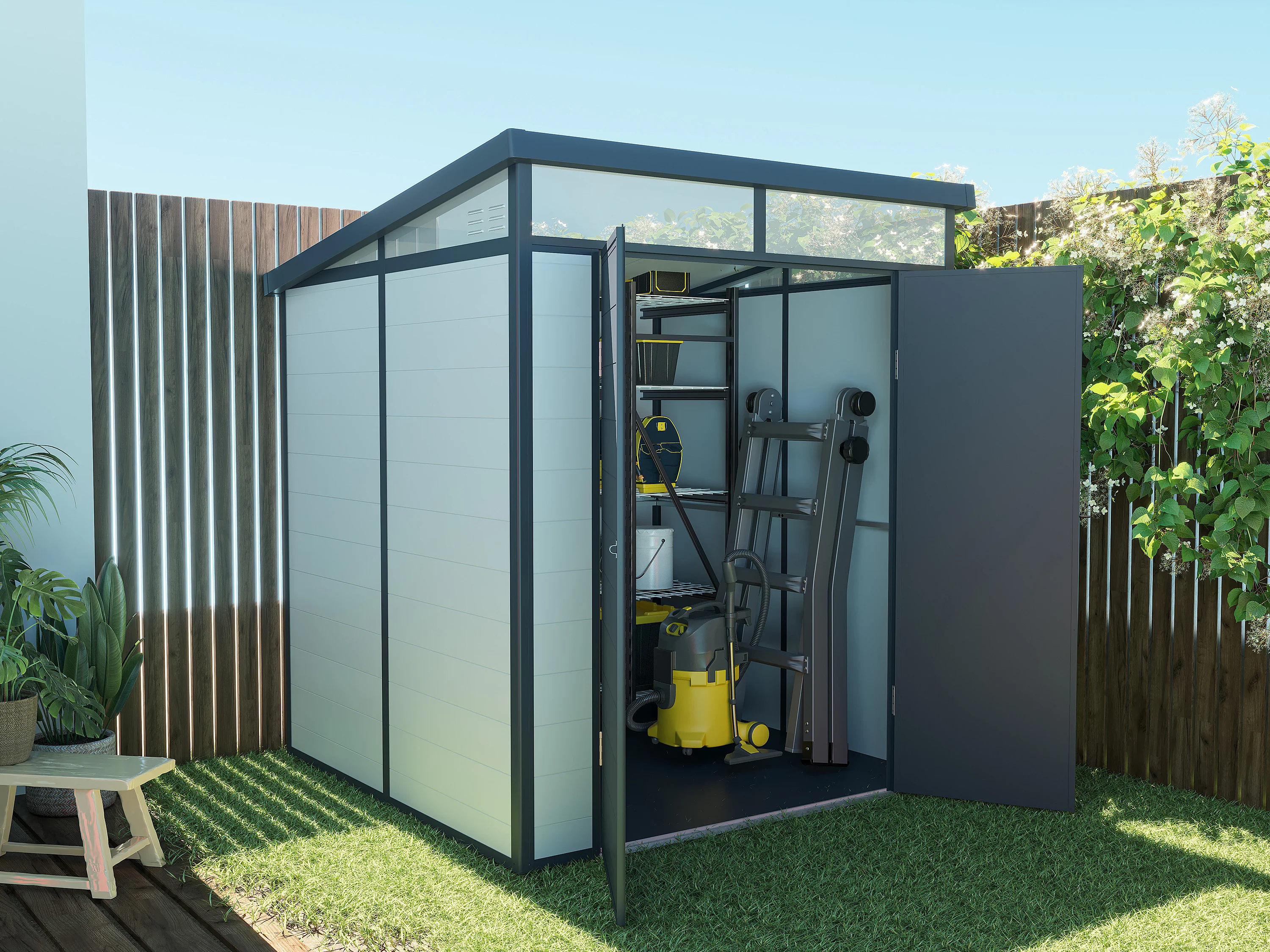 Abri de jardin en résine gris 3,65 m² avec plancher - MINARO