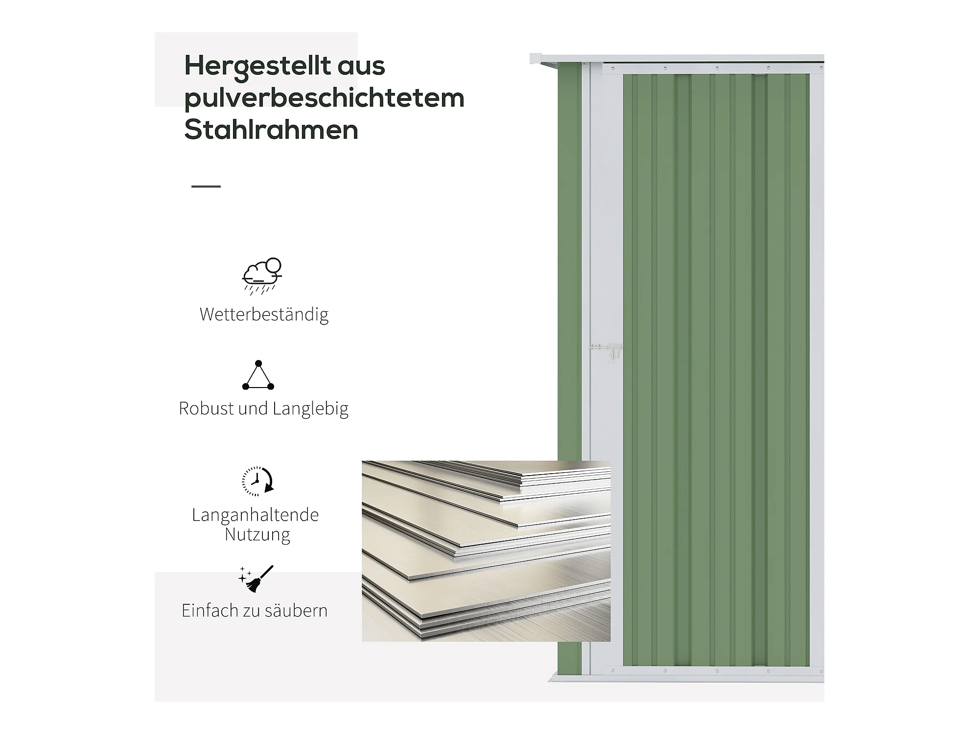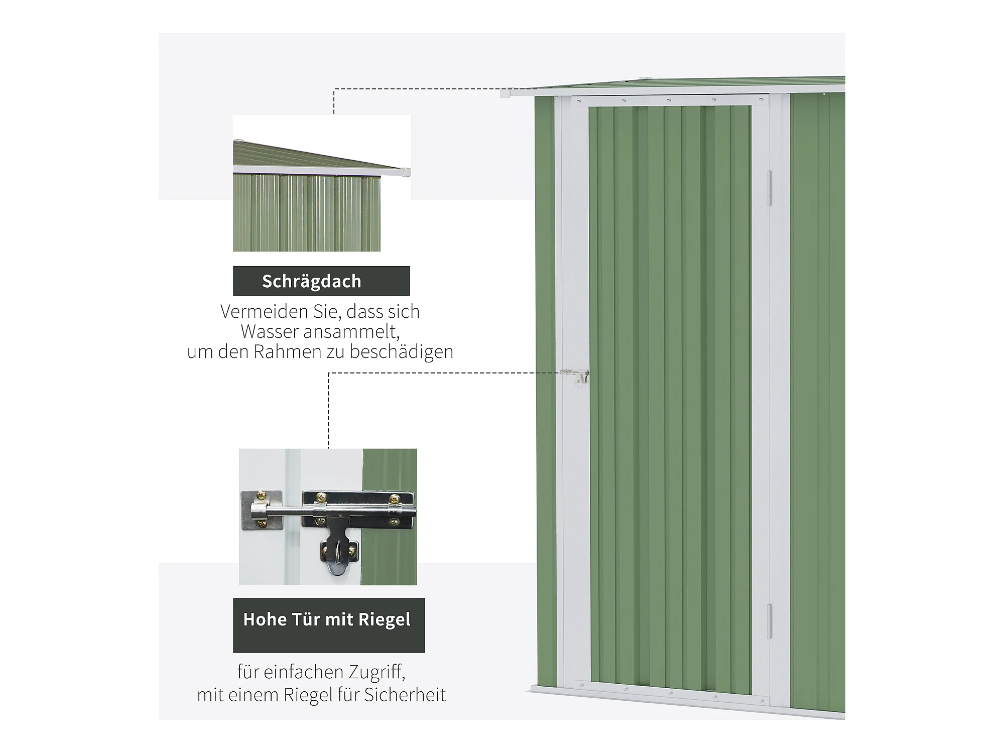 Abri de jardin métallique avec porte, résistant aux intempéries, acier, vert (142x84x189cm)