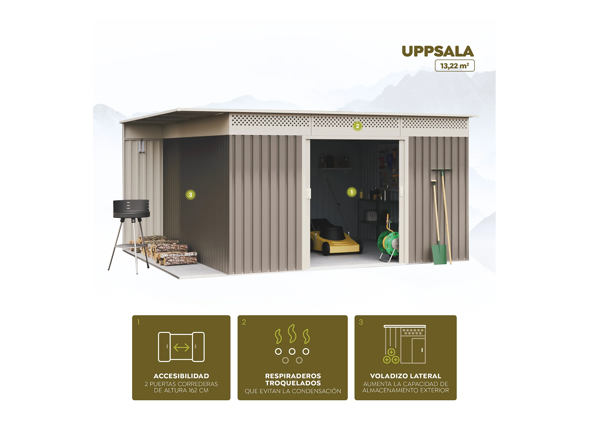 Abri de jardin Premium Uppsala 13.22 m2 - Garantie 10 ans - 397x333x191cm. Remise métal