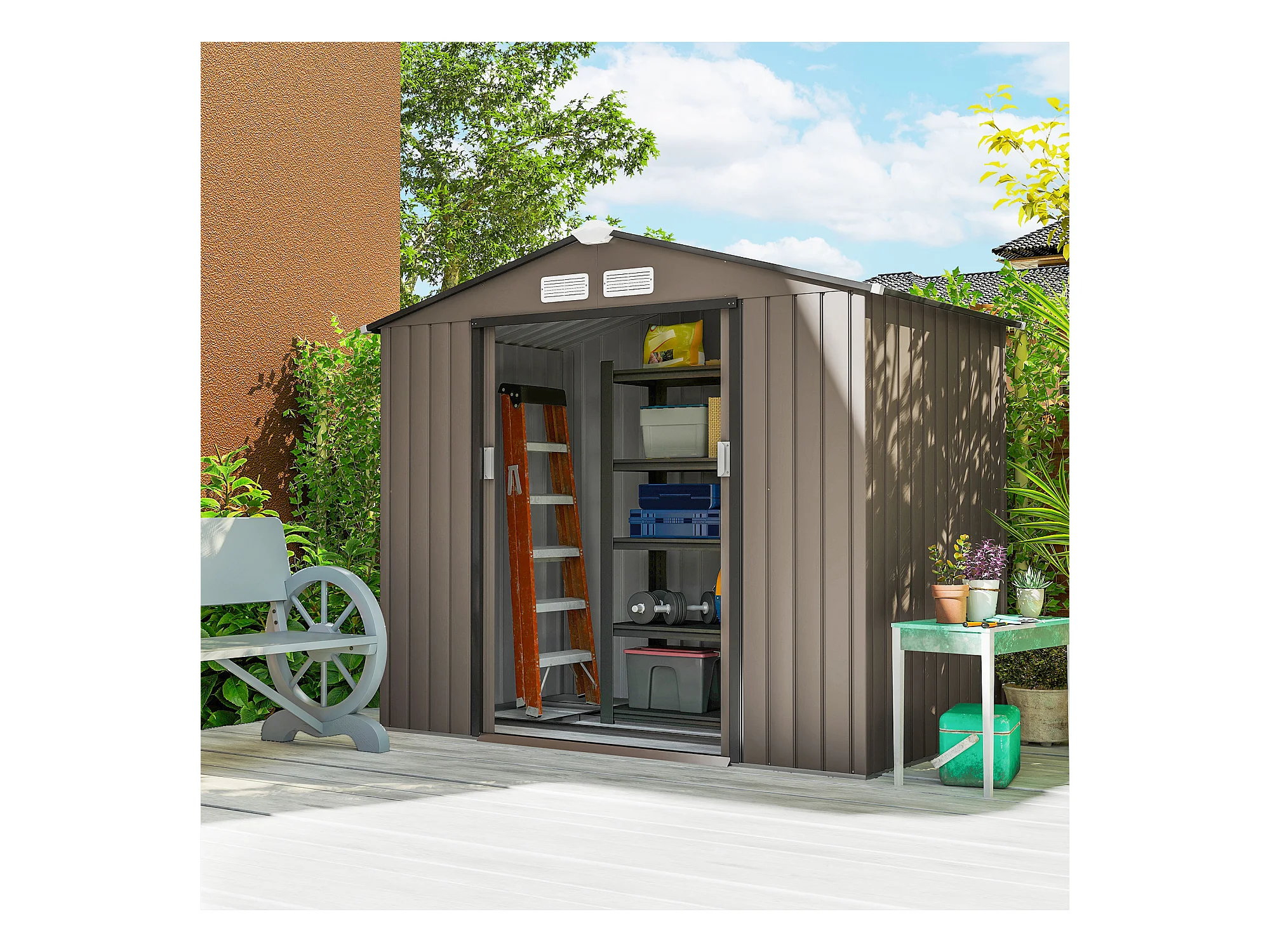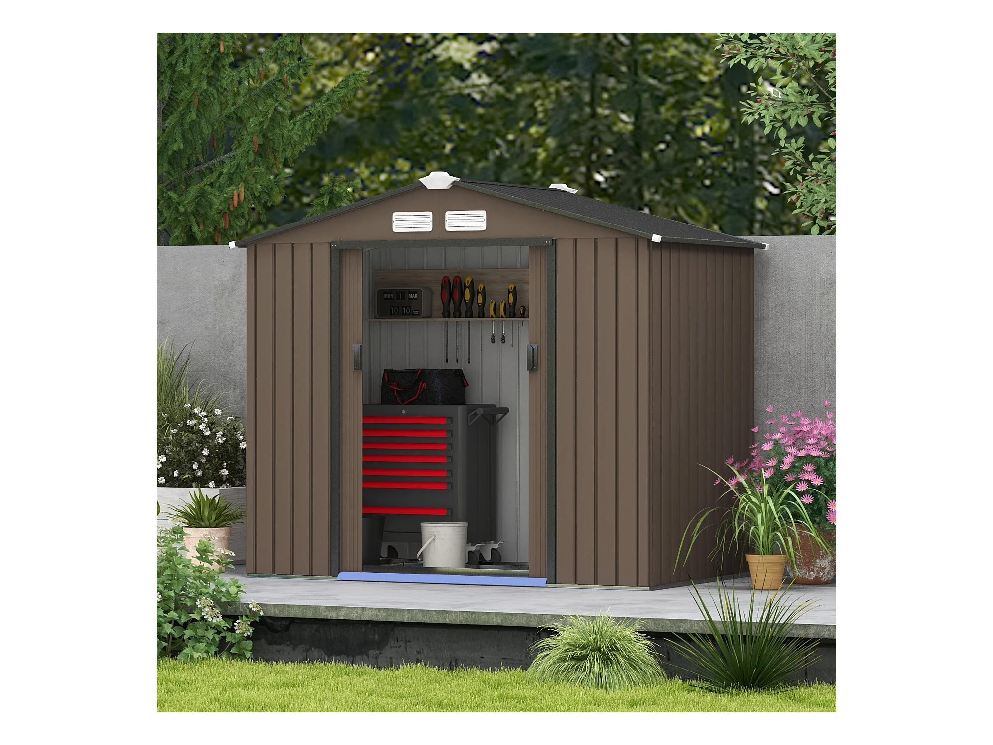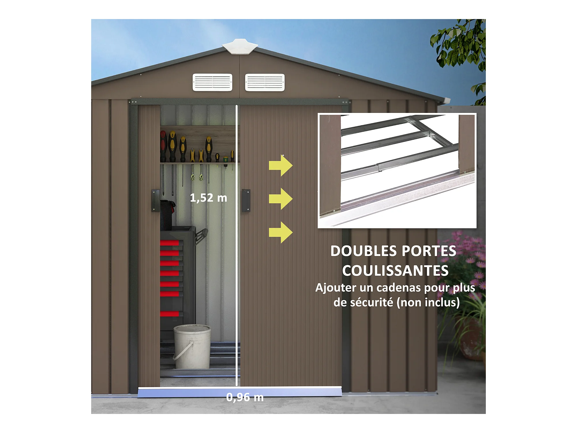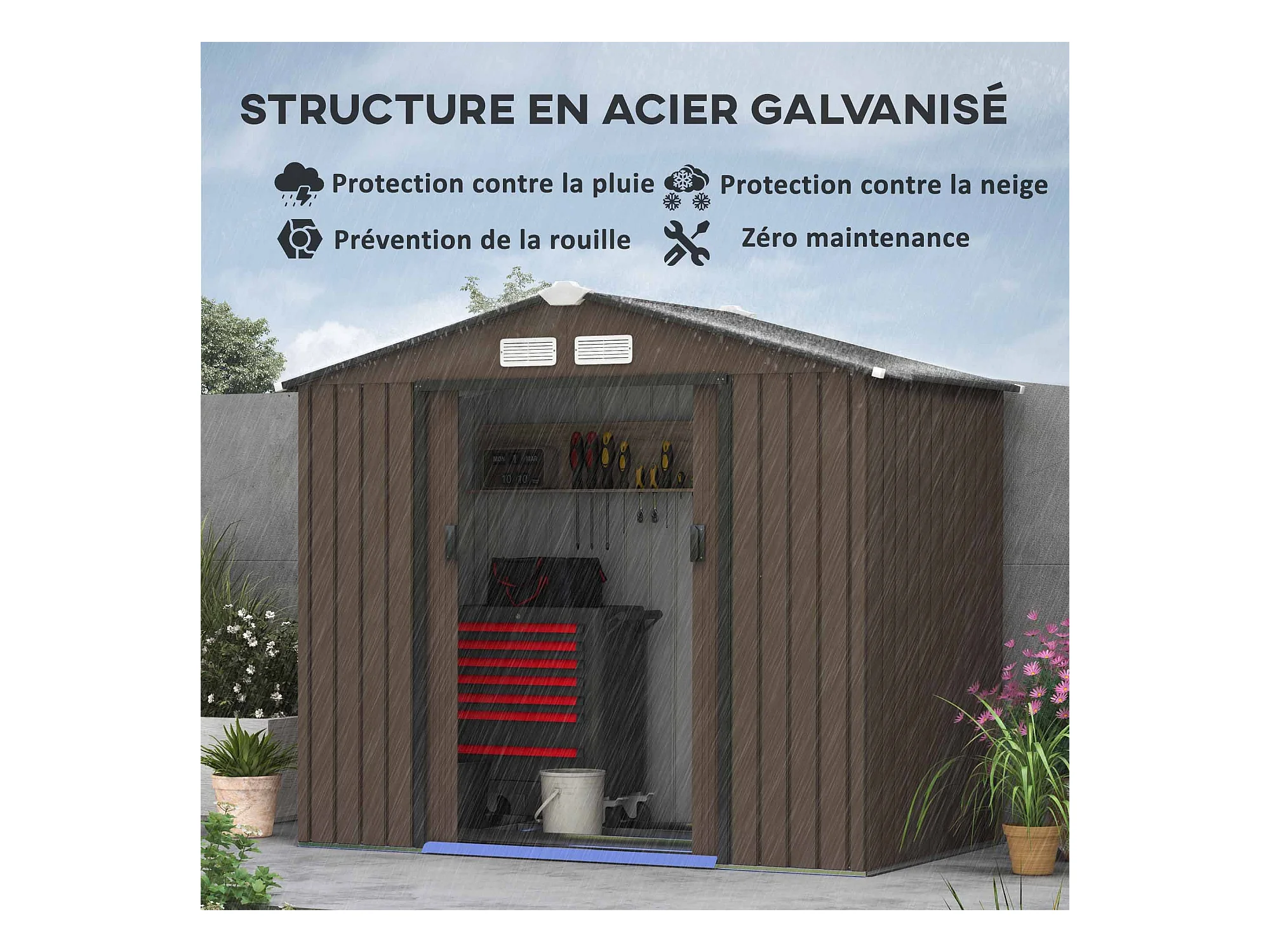 Abri de jardin - remise pour outils - cabanon porte verrouillable - dim. 213L x 130l x 185H cm - tôle d'acier chocolat