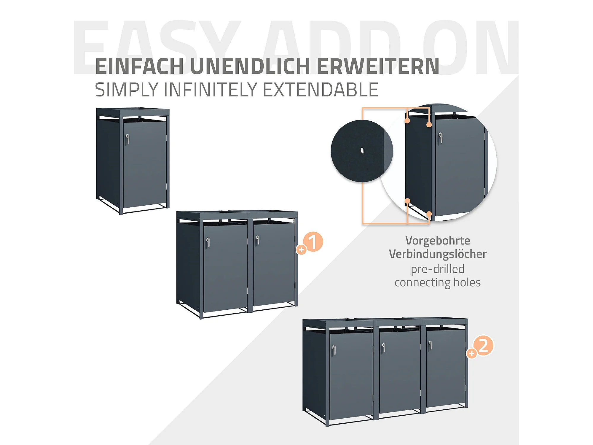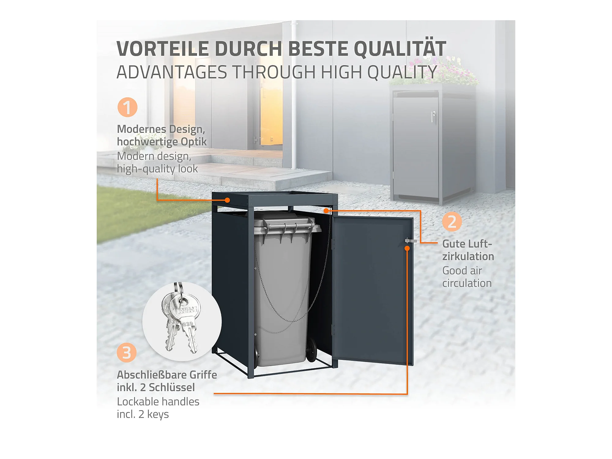 Abri pour 1 poubelle 68x80x124 cm capacité de 60L à 240L anthracite en acier avec toit pour plantes et fleurs / 1 porte résistant aux intempéries