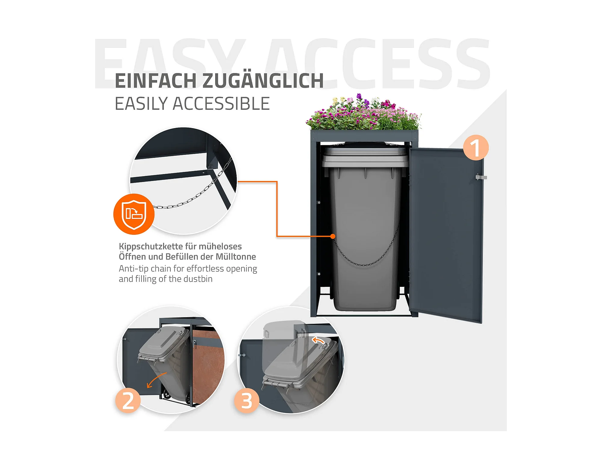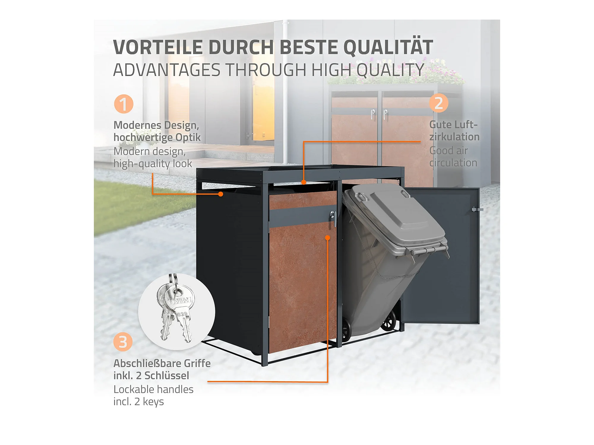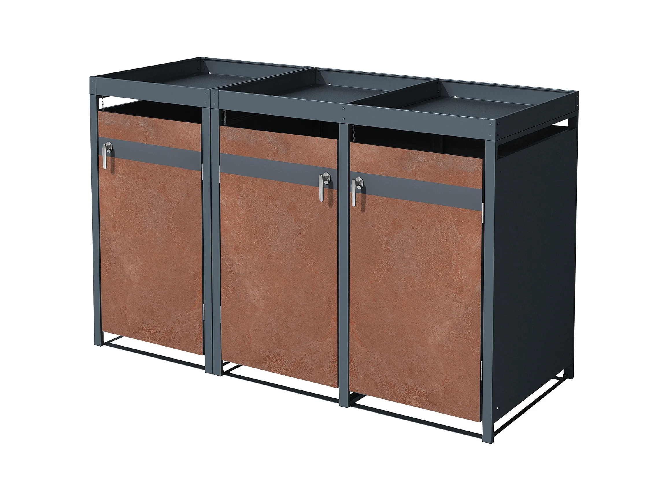 Abri pour 3 poubelles avec toit en acier anthracite rouillé 240L 200x80x116,3cm