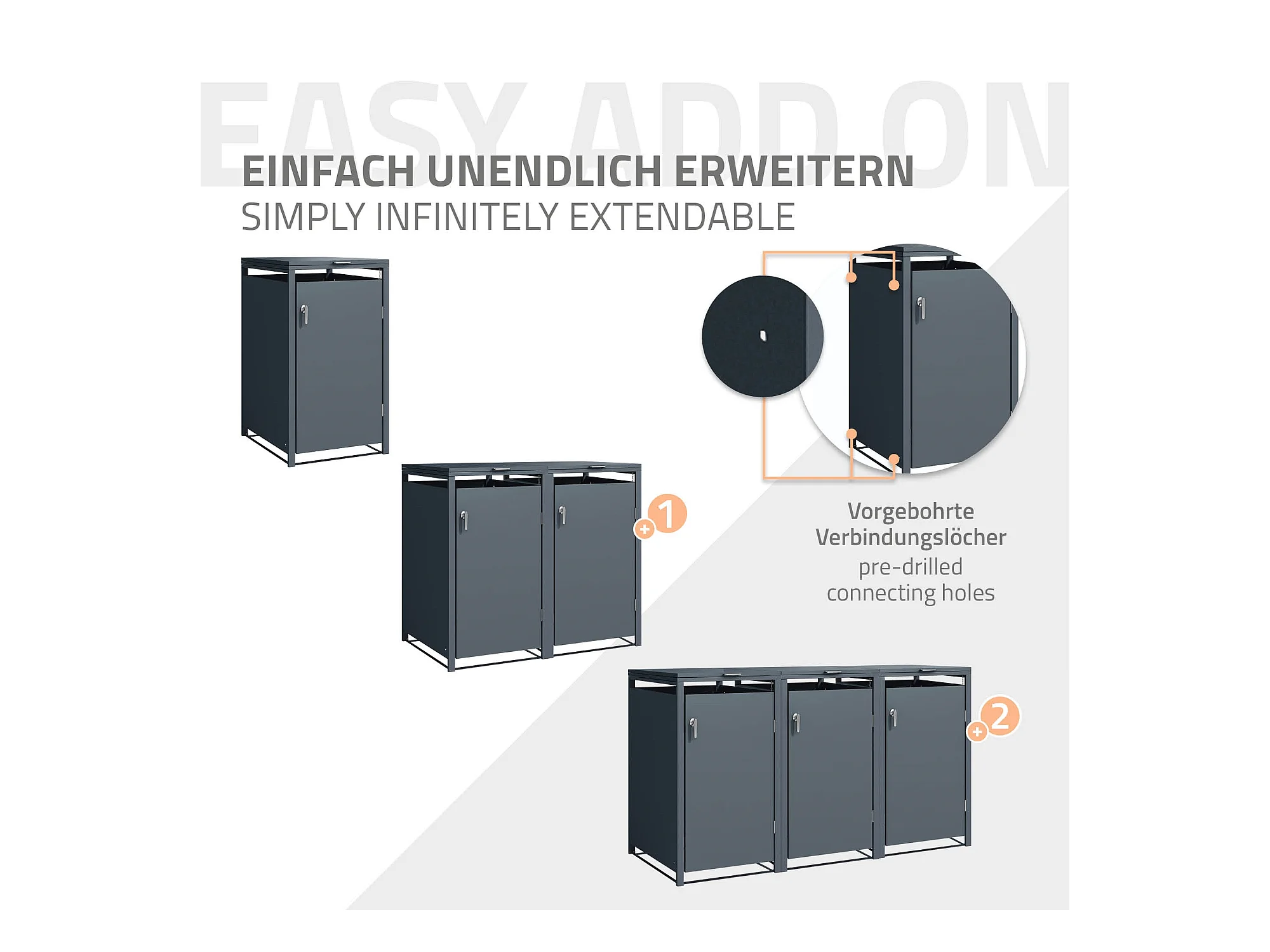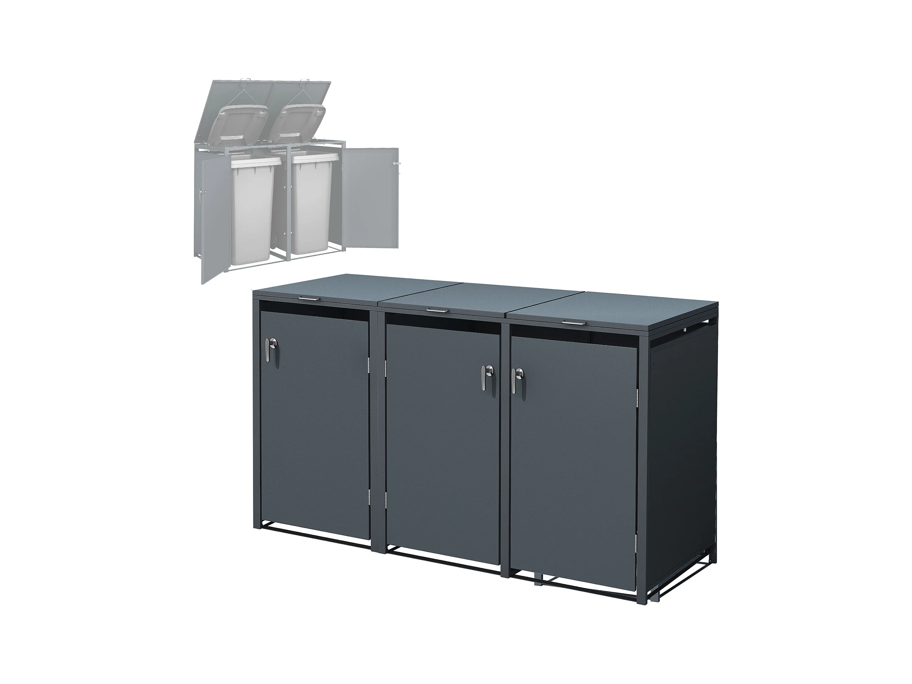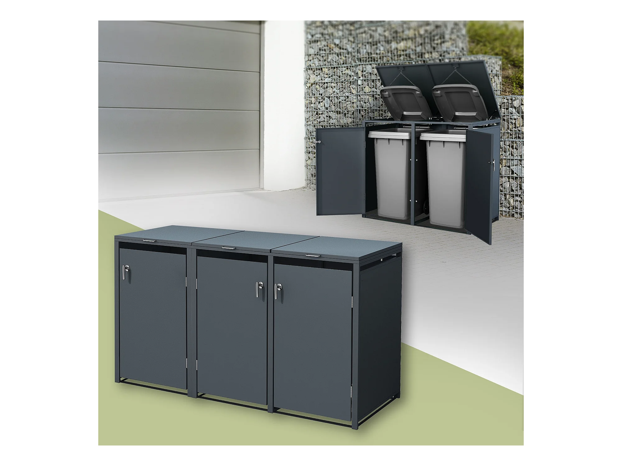 Abri pour 3 poubelles 200x80x116,3 cm capacité de 60 à 240 litres anthracite en acier avec couvercle rabattable et 3 portes résistant aux intempéries