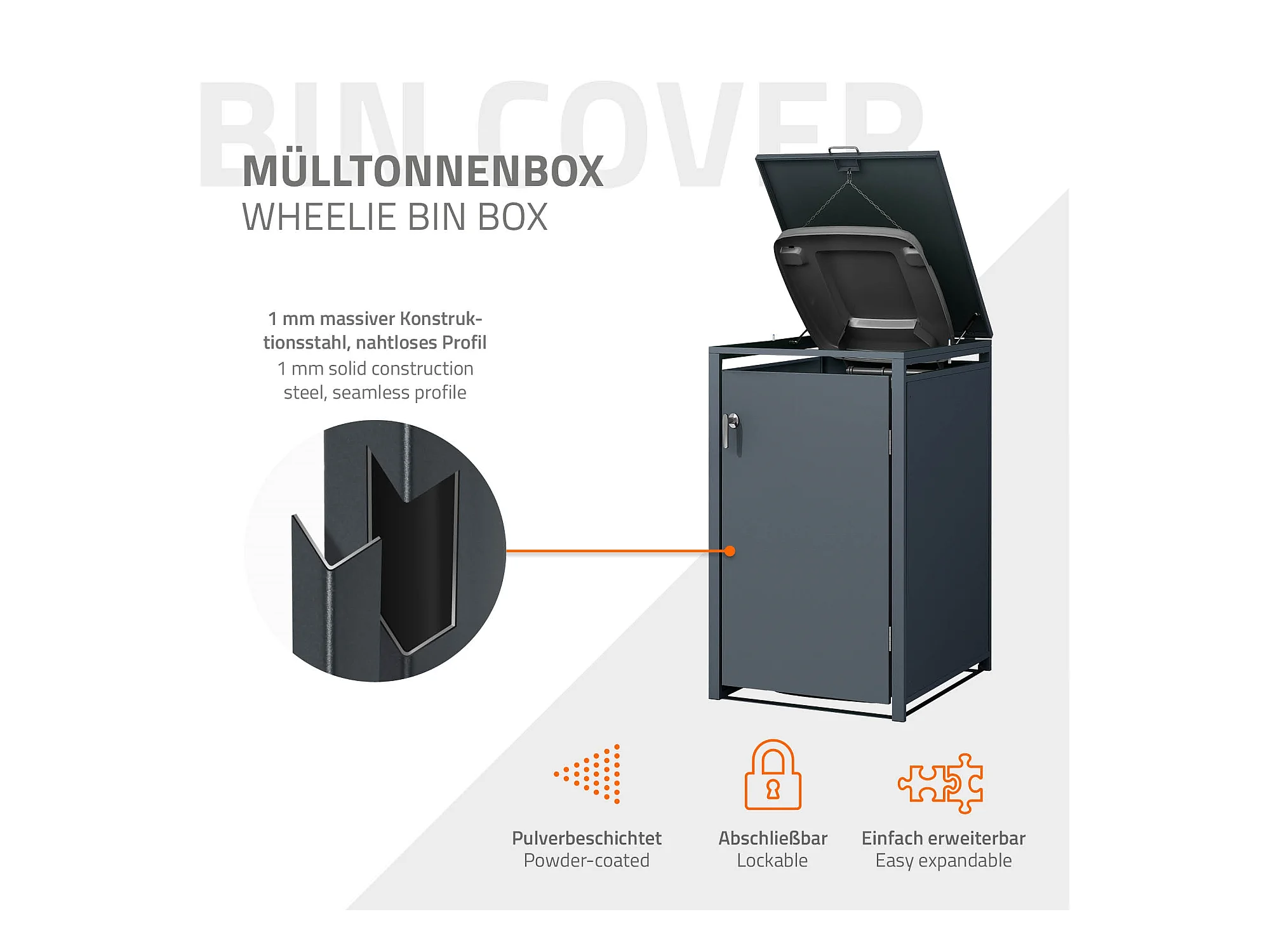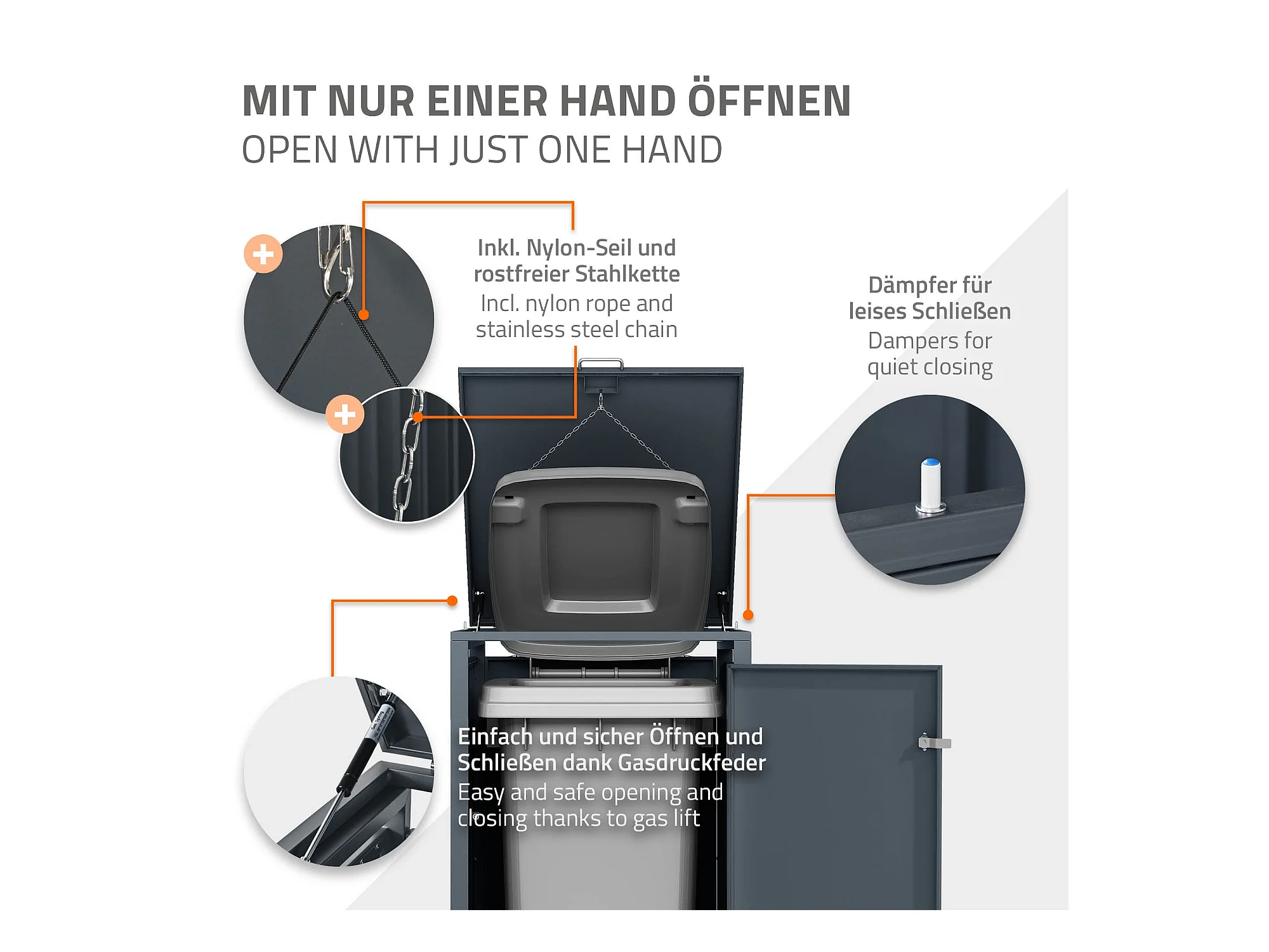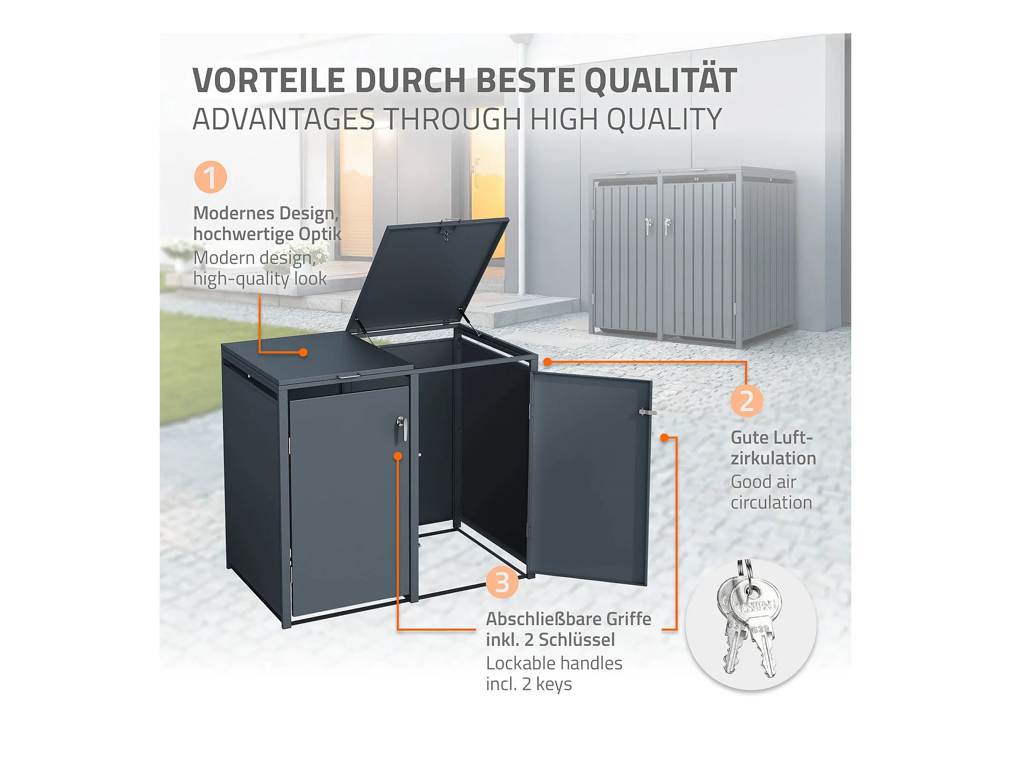 Abri pour 3 poubelles 200x80x116,3 cm capacité de 60 à 240 litres anthracite en acier avec couvercle rabattable et 3 portes résistant aux intempéries