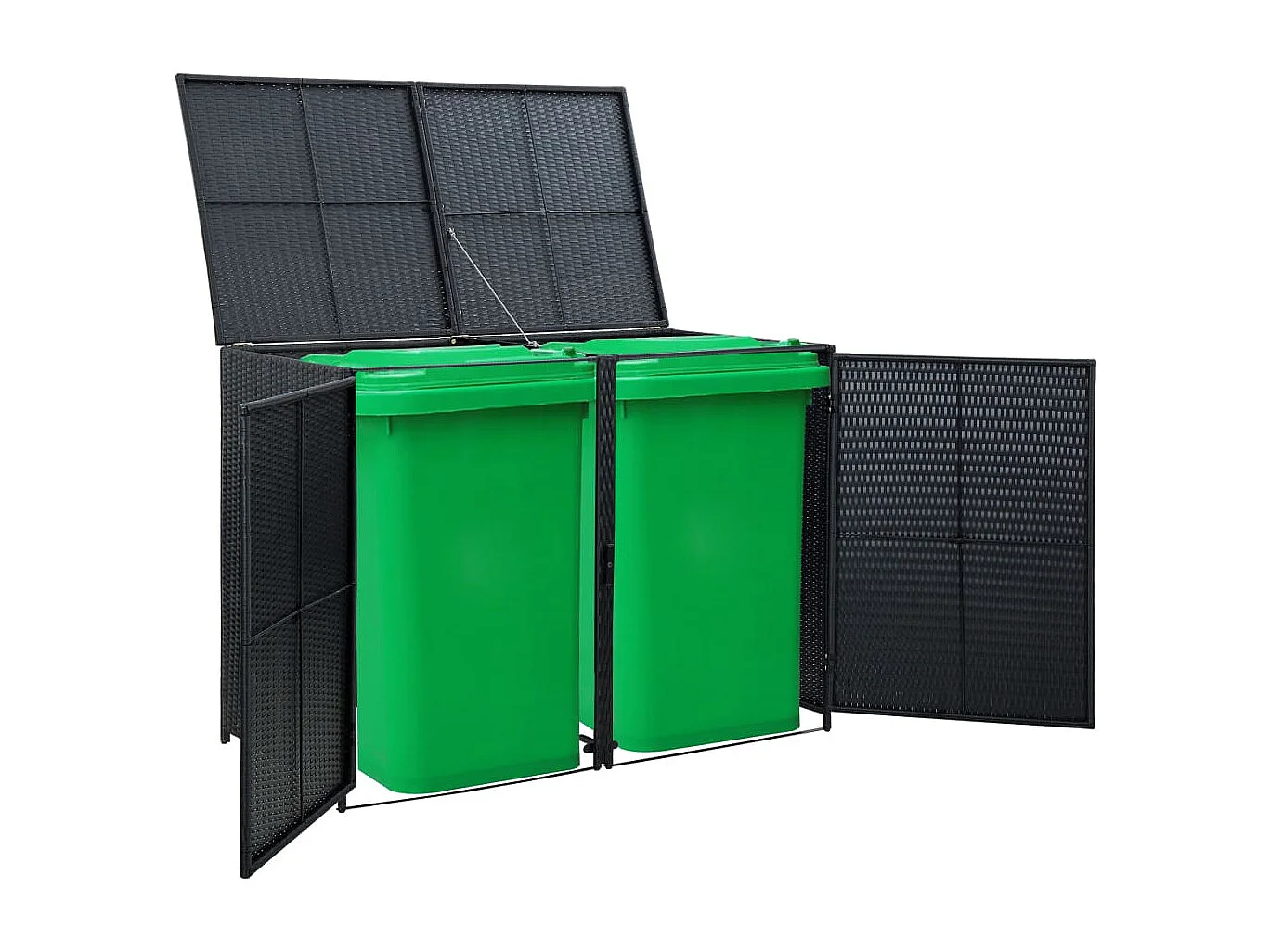 Abris pour poubelle double Résine tressée Noir 148x80x111