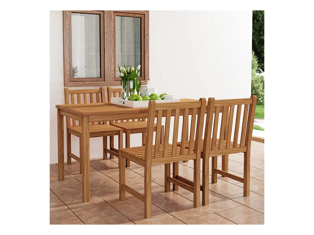 Acqui Terme Ensemble de salle à manger de jardin 5 pièces 160 x 80 cm en bois de teck massif
