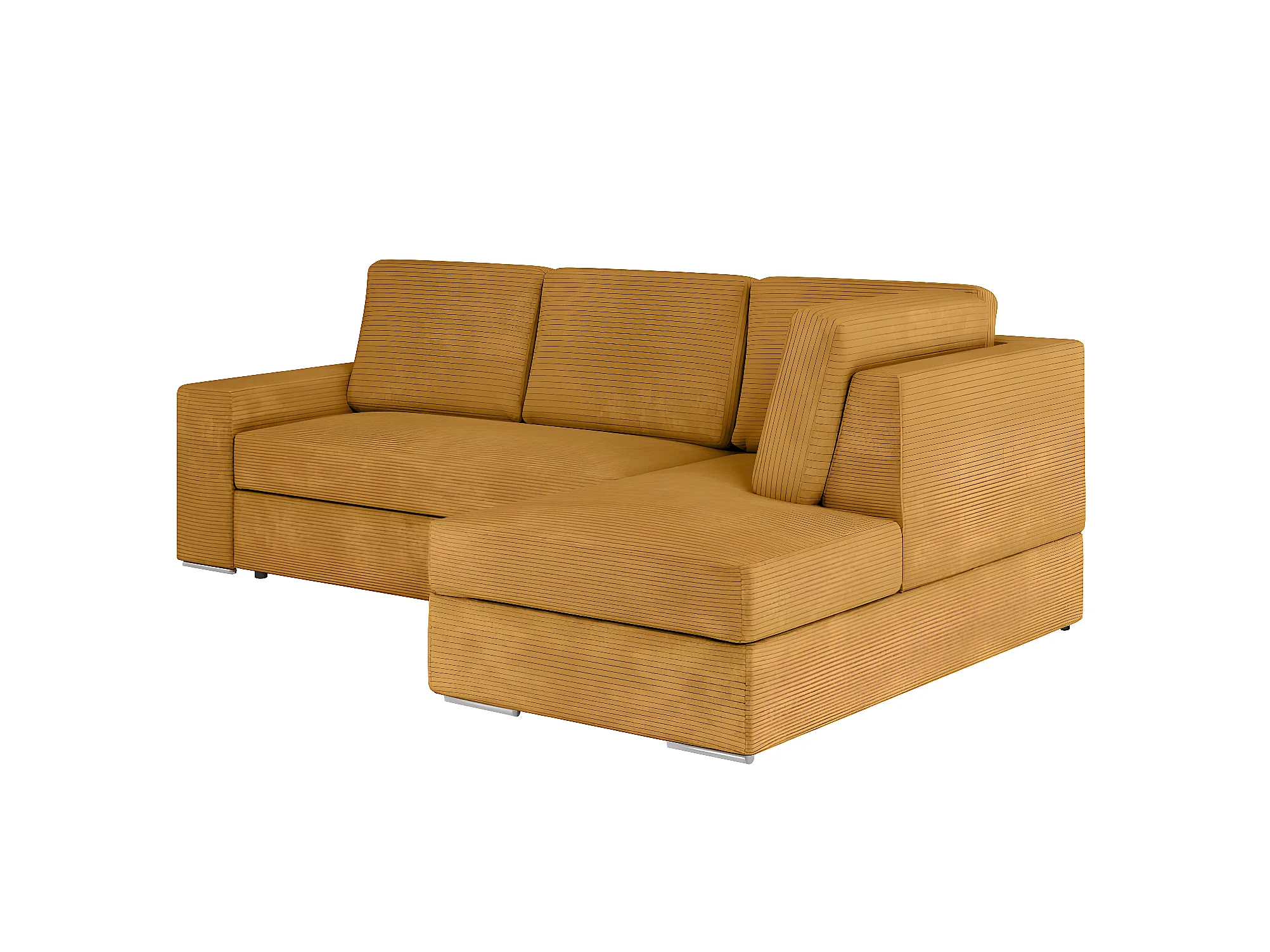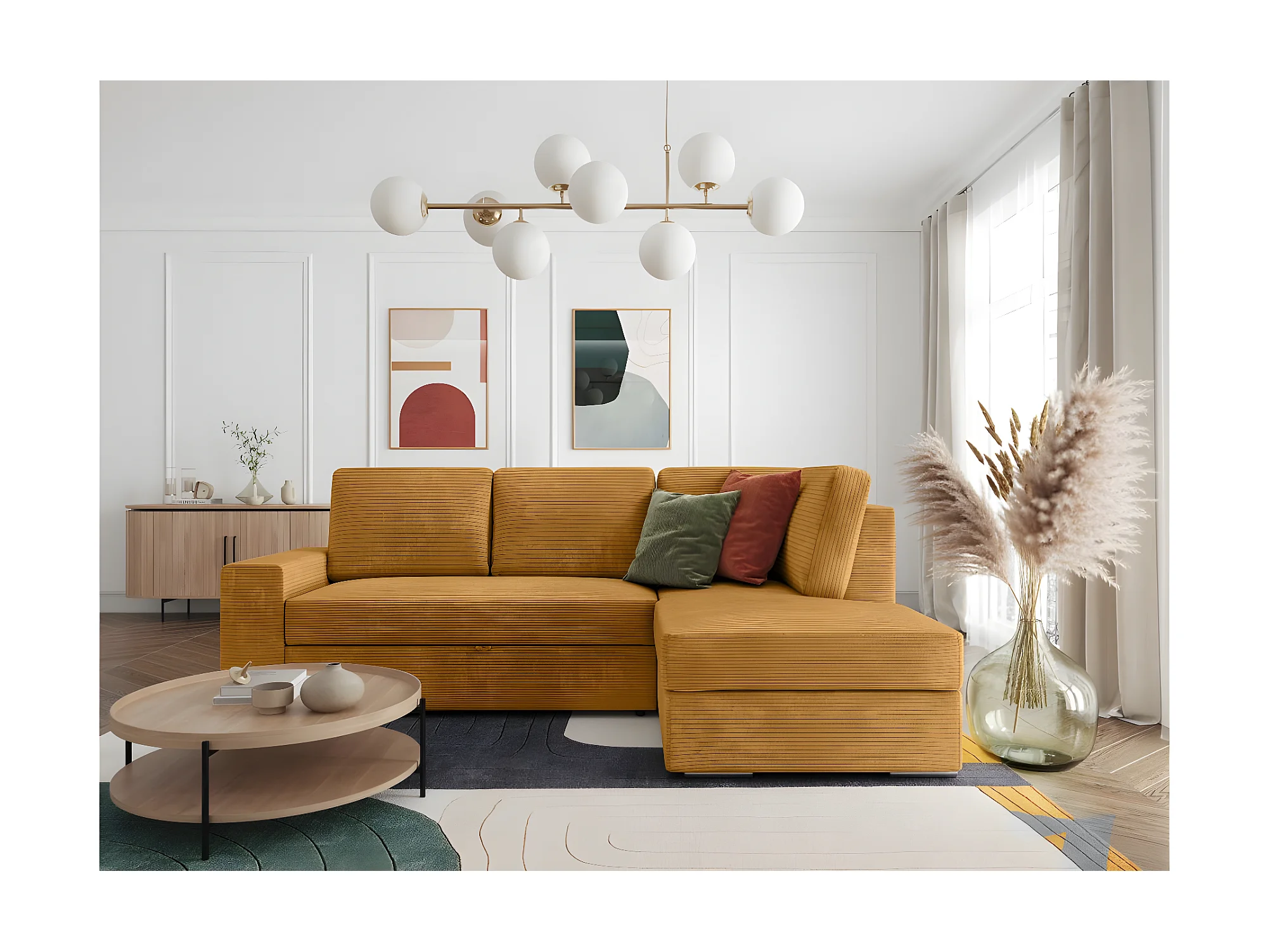 Canapé d'angle droit 3 places convertible Aden avec coffre en velours côtelé - Jaune - L246 x P174 x H96cm - Loungitude
