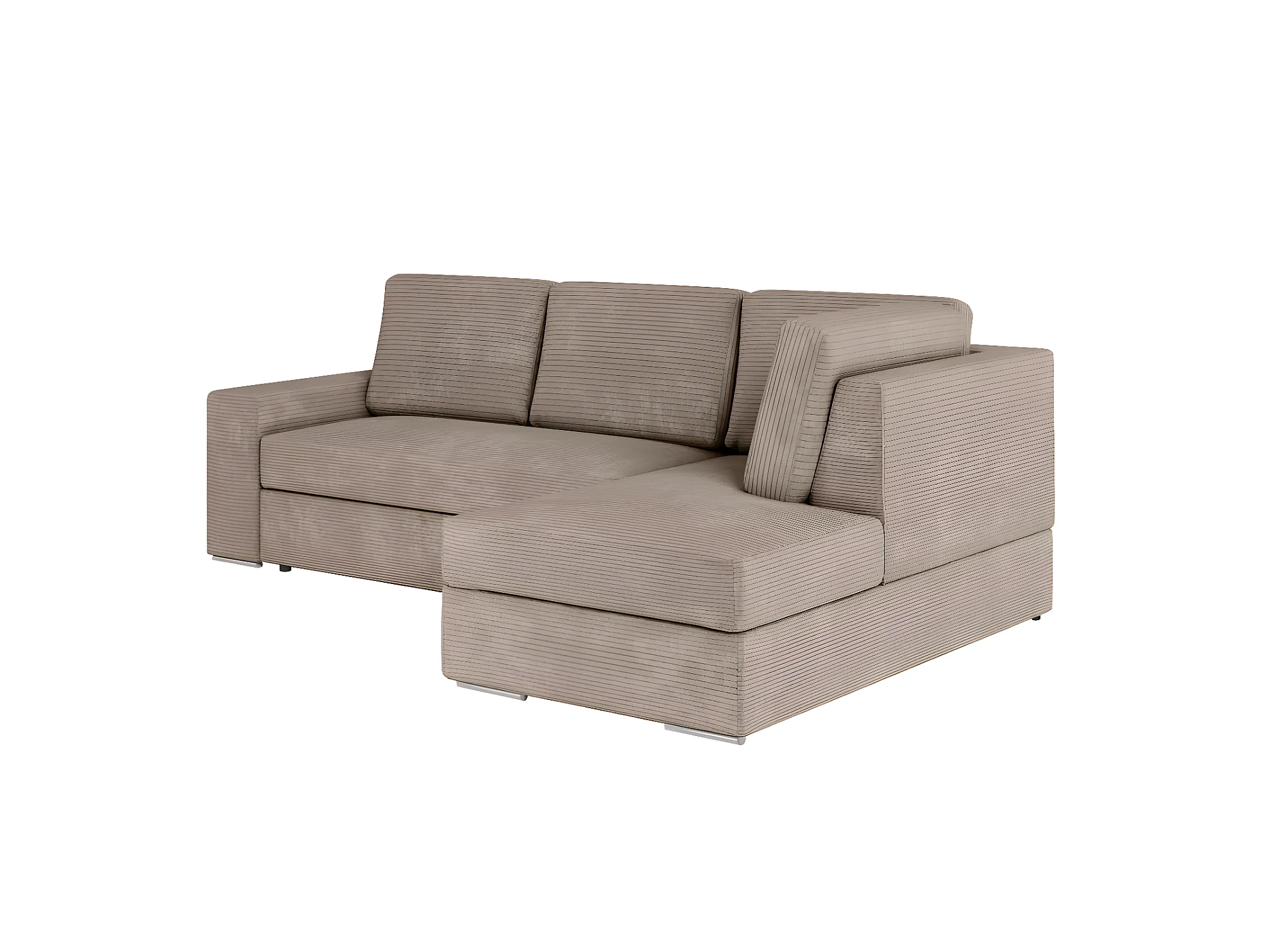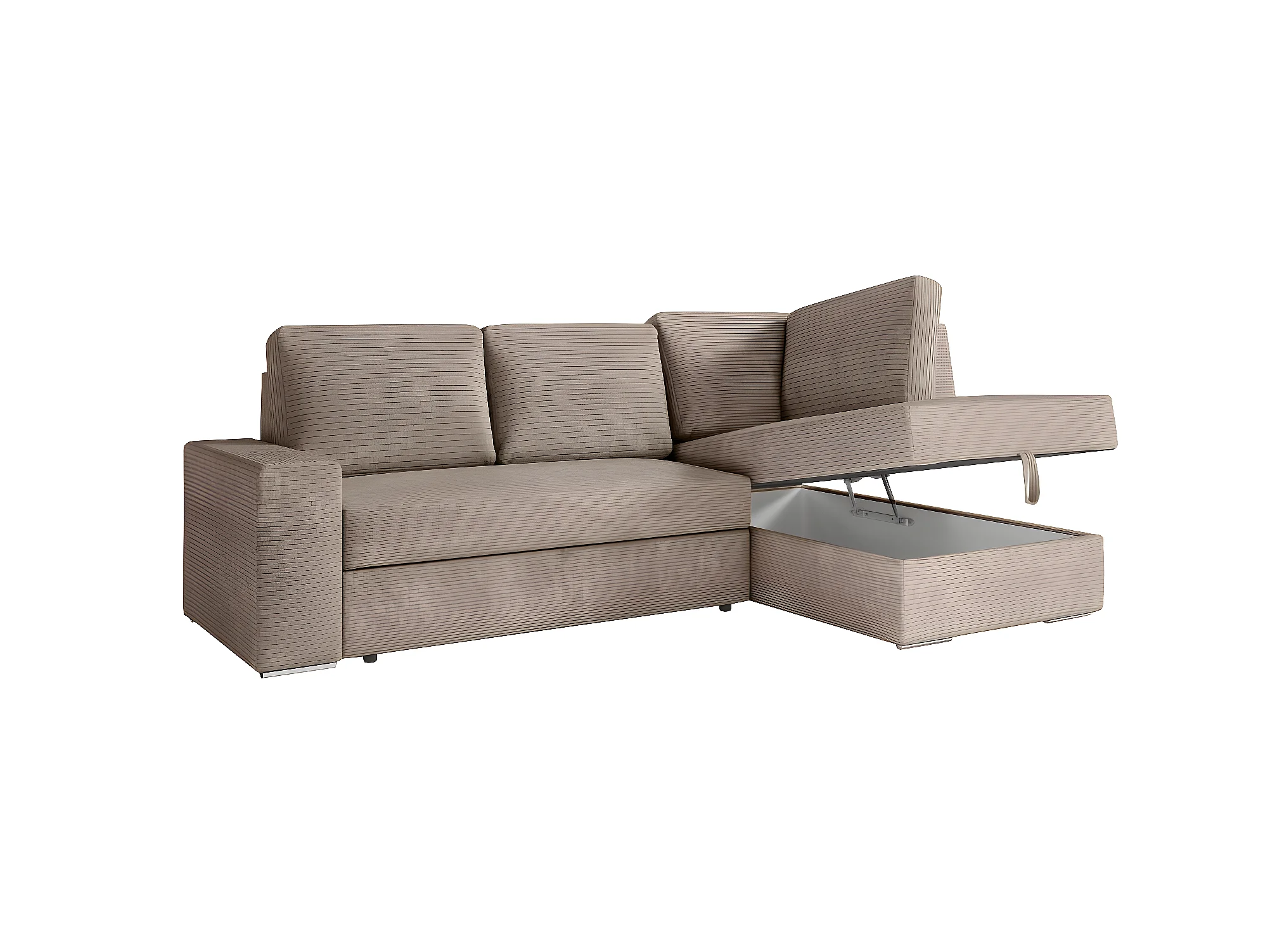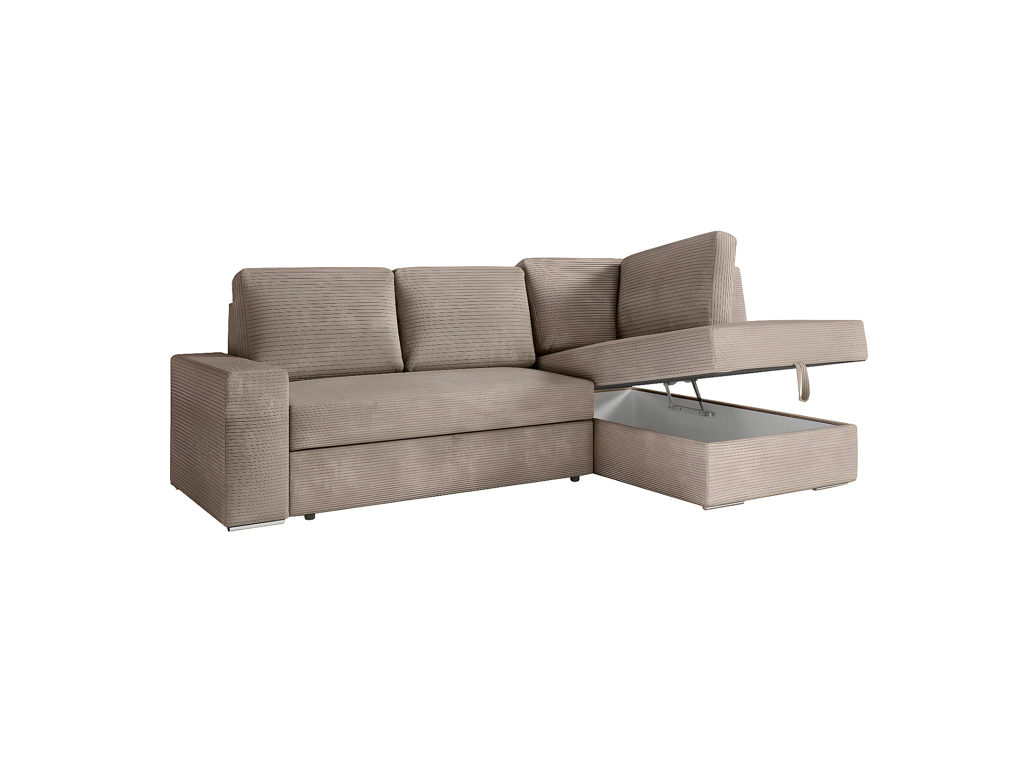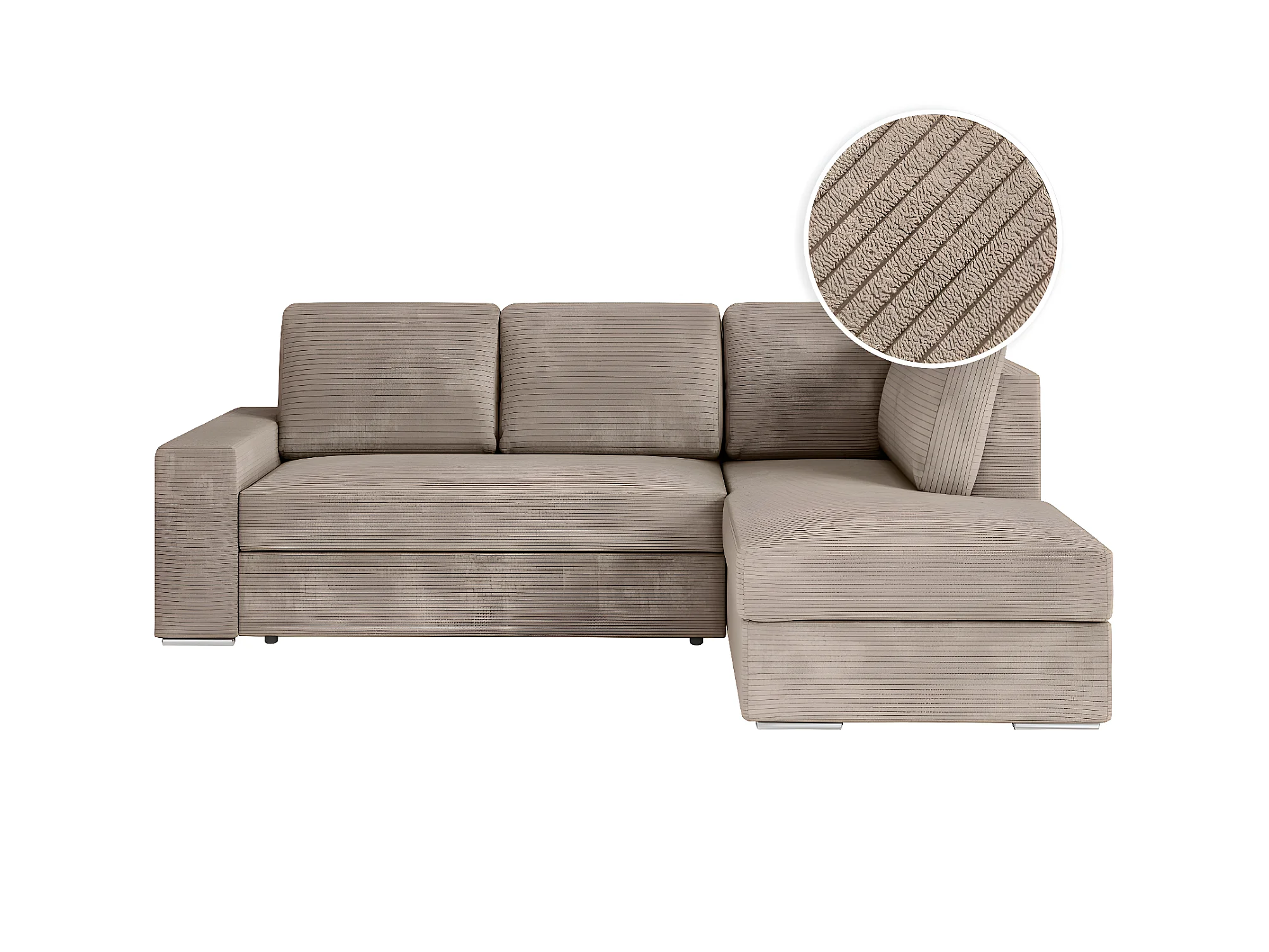 Canapé d'angle droit 3 places convertible Aden avec coffre en velours côtelé - Taupe - L246 x P174 x H96cm - Loungitude