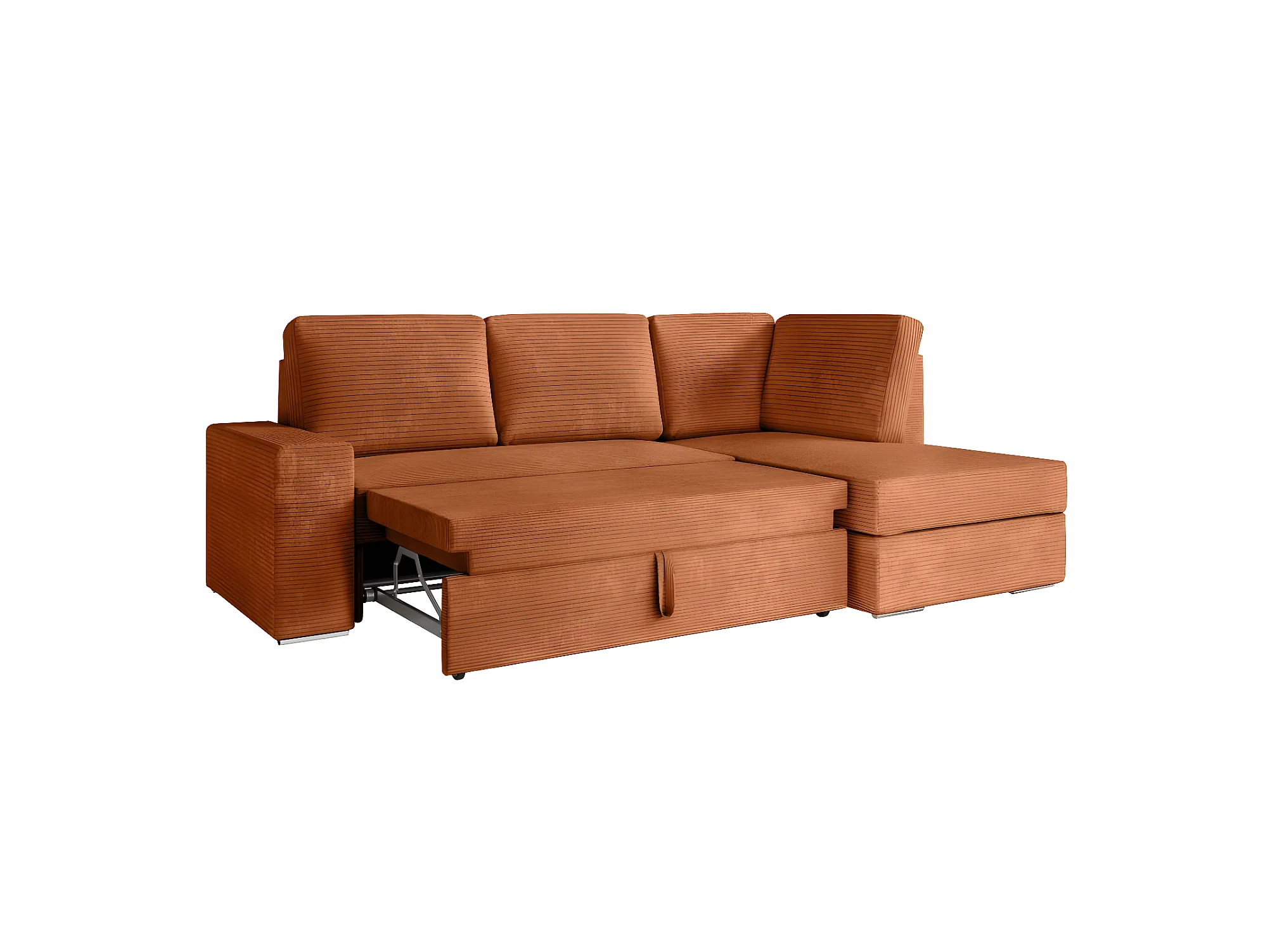 Canapé d'angle droit 3 places convertible Aden avec coffre en velours côtelé - Terracotta - L246 x P174 x H96cm - Loungitude