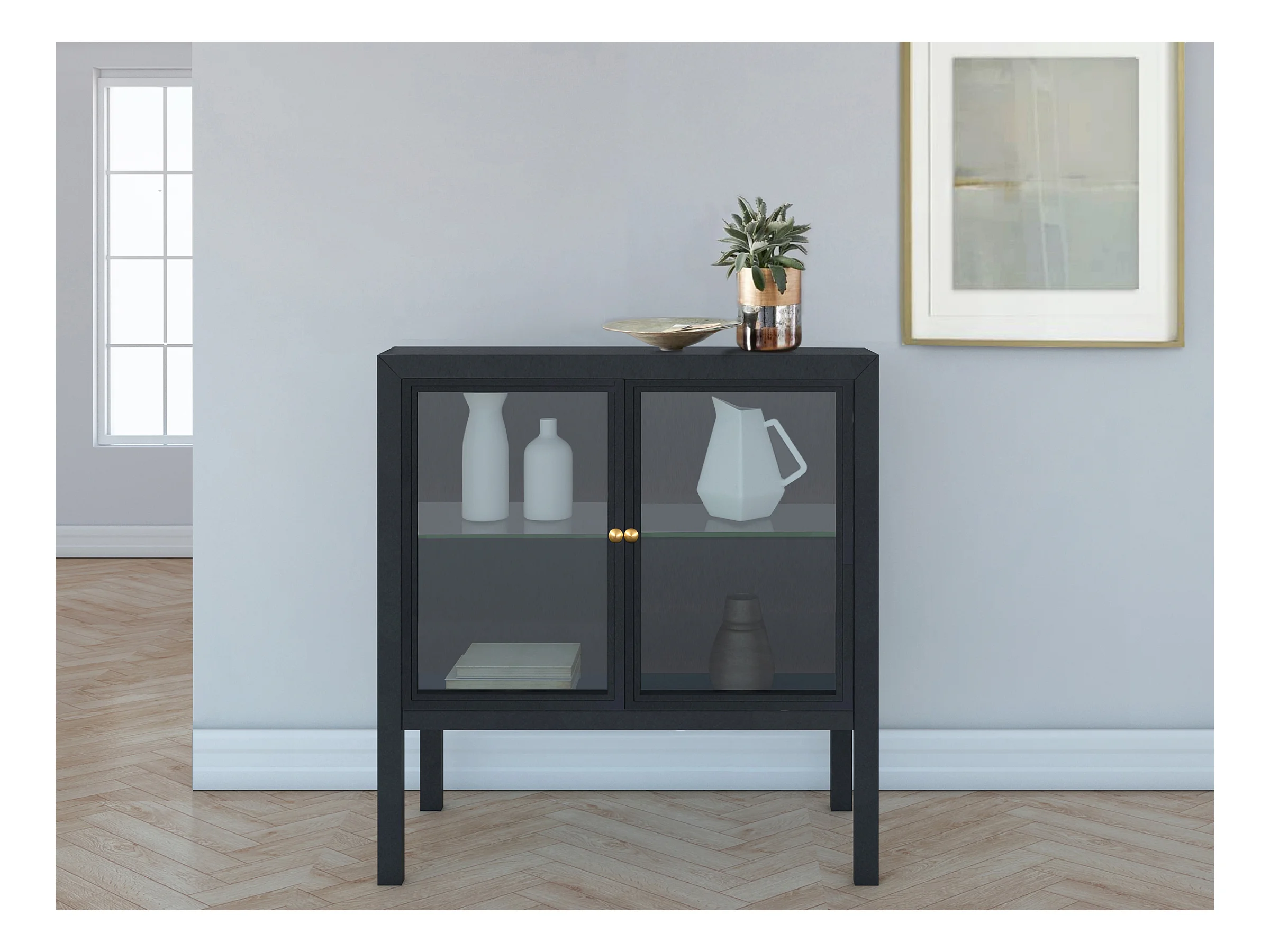 Adrianni | Armoire avec 2 portes vitrées en métal noir