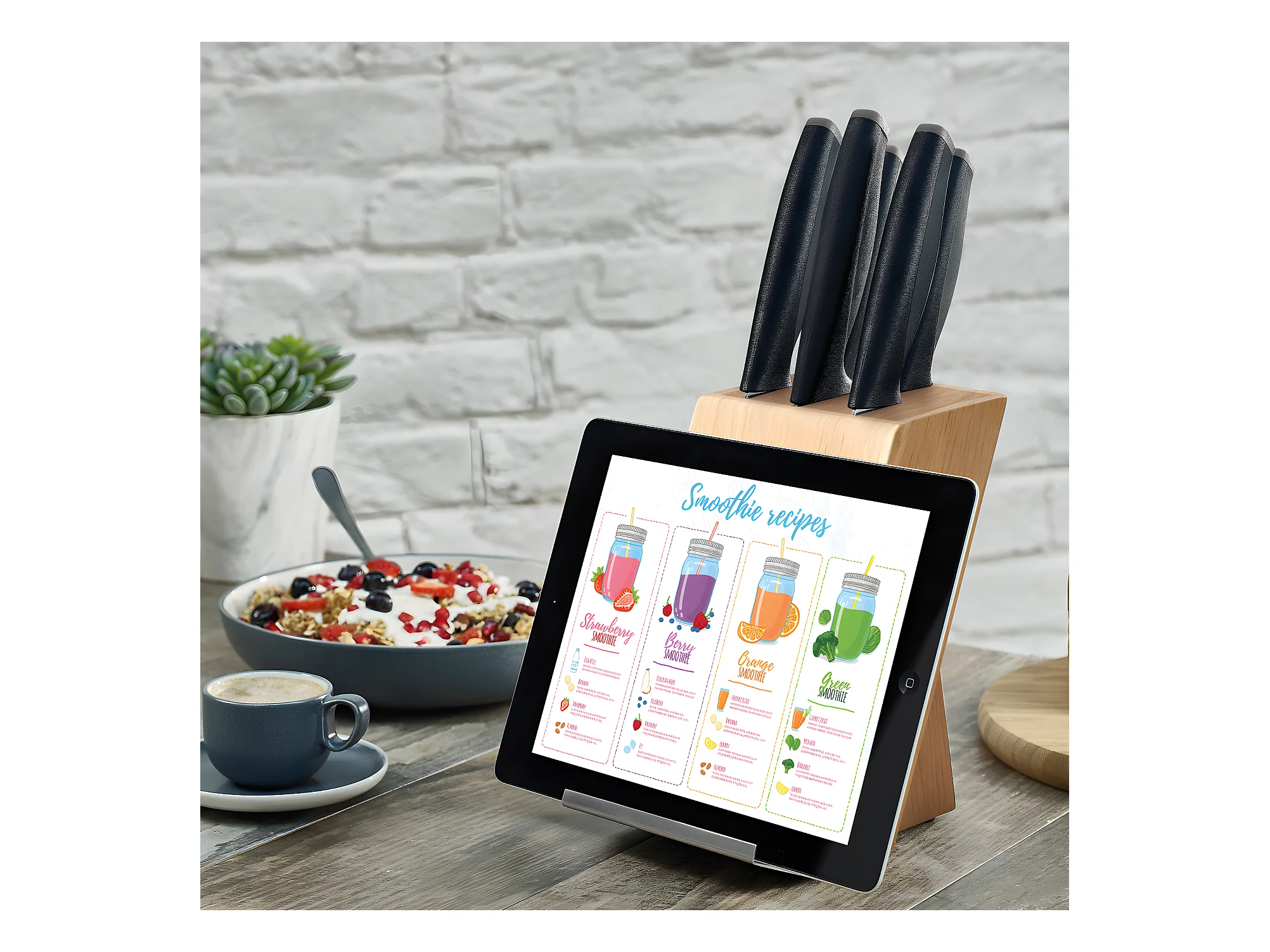 Advantage - Bloc bois naturel 5 pièces lames inox avec porte tablette