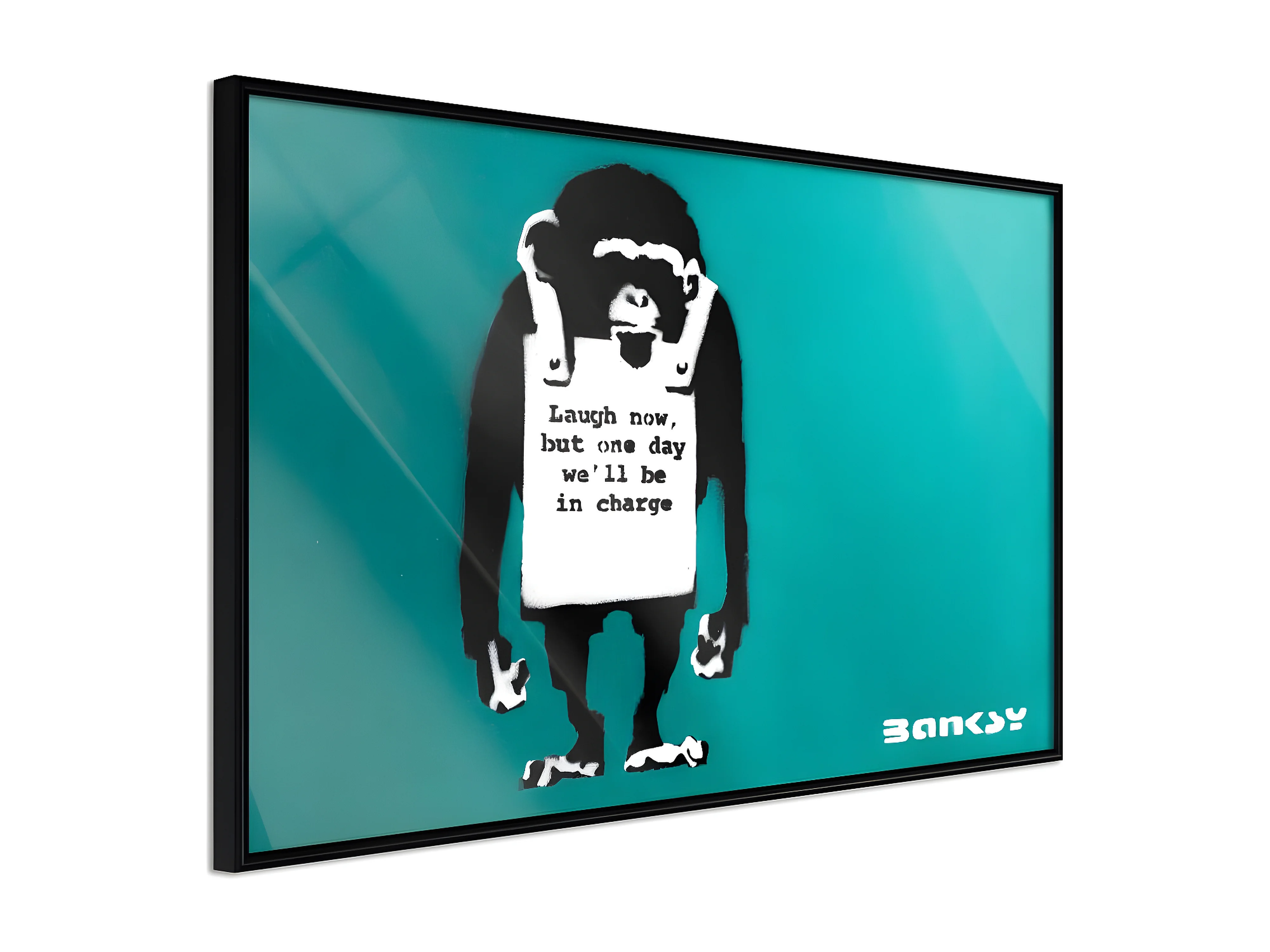 Affiche Murale Encadrée "Banksy Laugh Now" 90 x 60 cm Noir