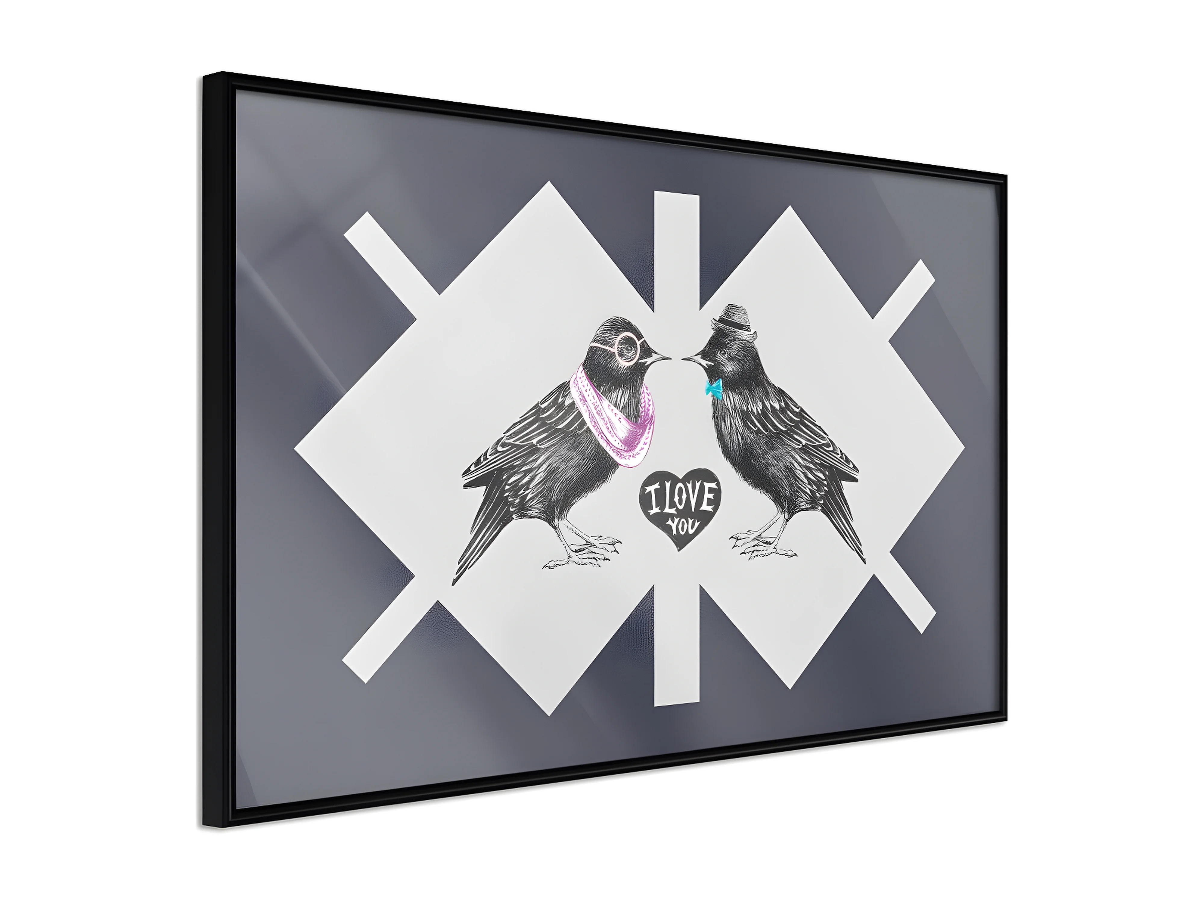 Affiche Murale Encadrée "Bird Love" 90 x 60 cm Noir
