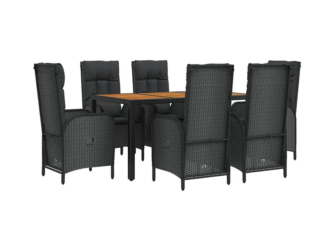 Afragola Ensemble à manger de jardin coussins 7pcs Noir Résine tressée