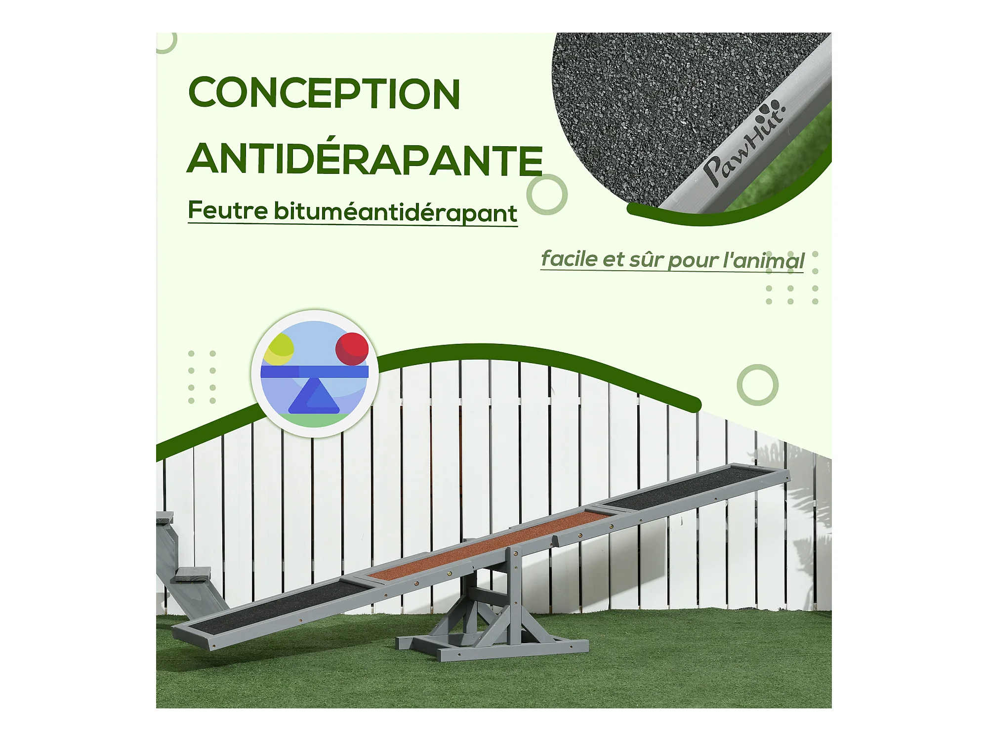 Agility sport pour chien bascule - bascule pour chien - équipement entrainement chien - bois sapin pré-huilé feutre bitumé antidérapant brique gris