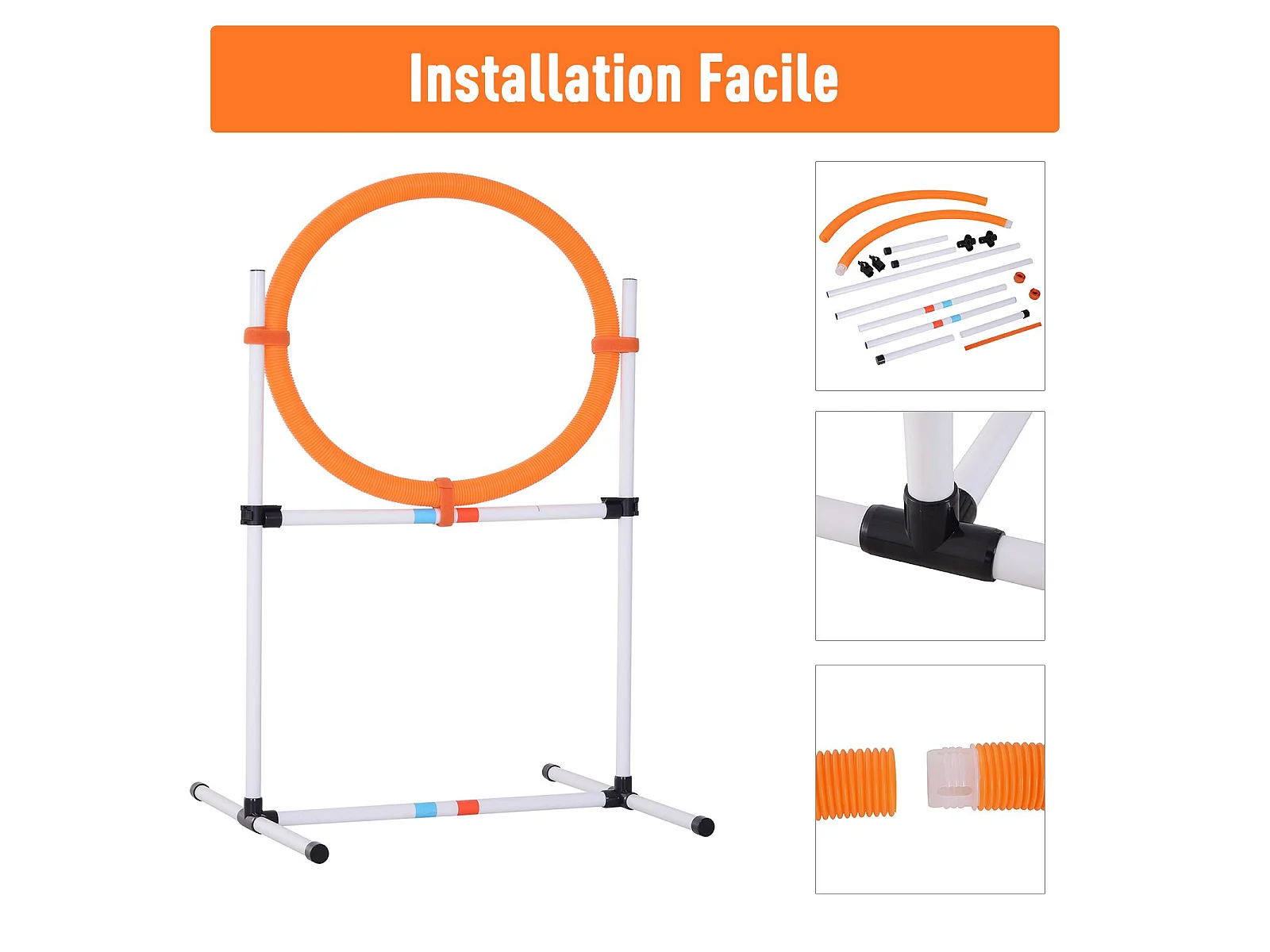 Agility sport pour chiens anneau d'agilité et obstacle 2 en 1 avec sac de transport plastique blanc orange