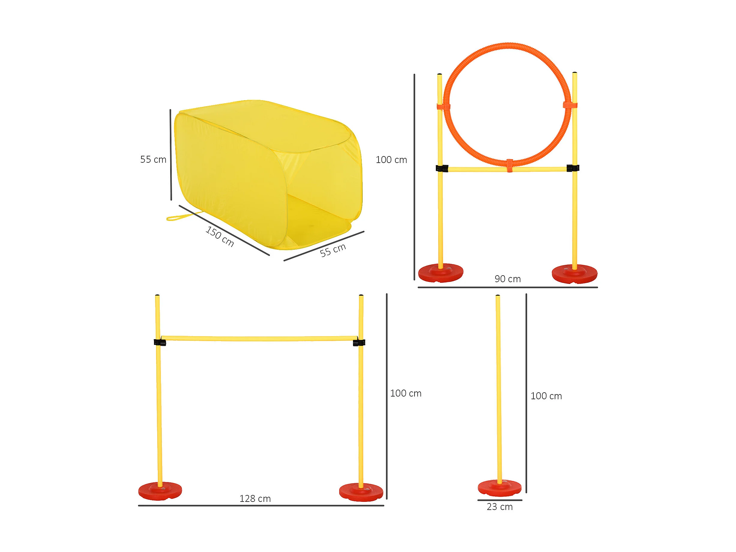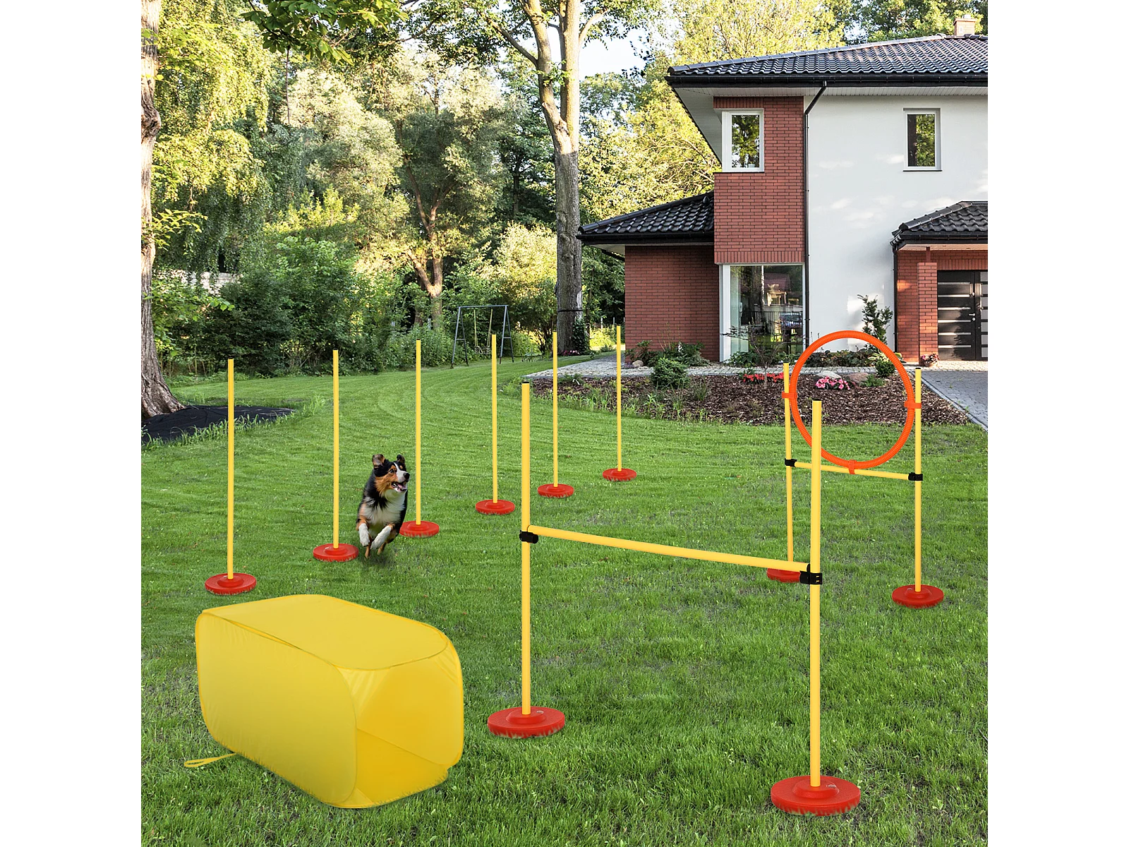 Agility sport pour chiens équipement complet haies, slalom, tunnel + sac de transport jaune