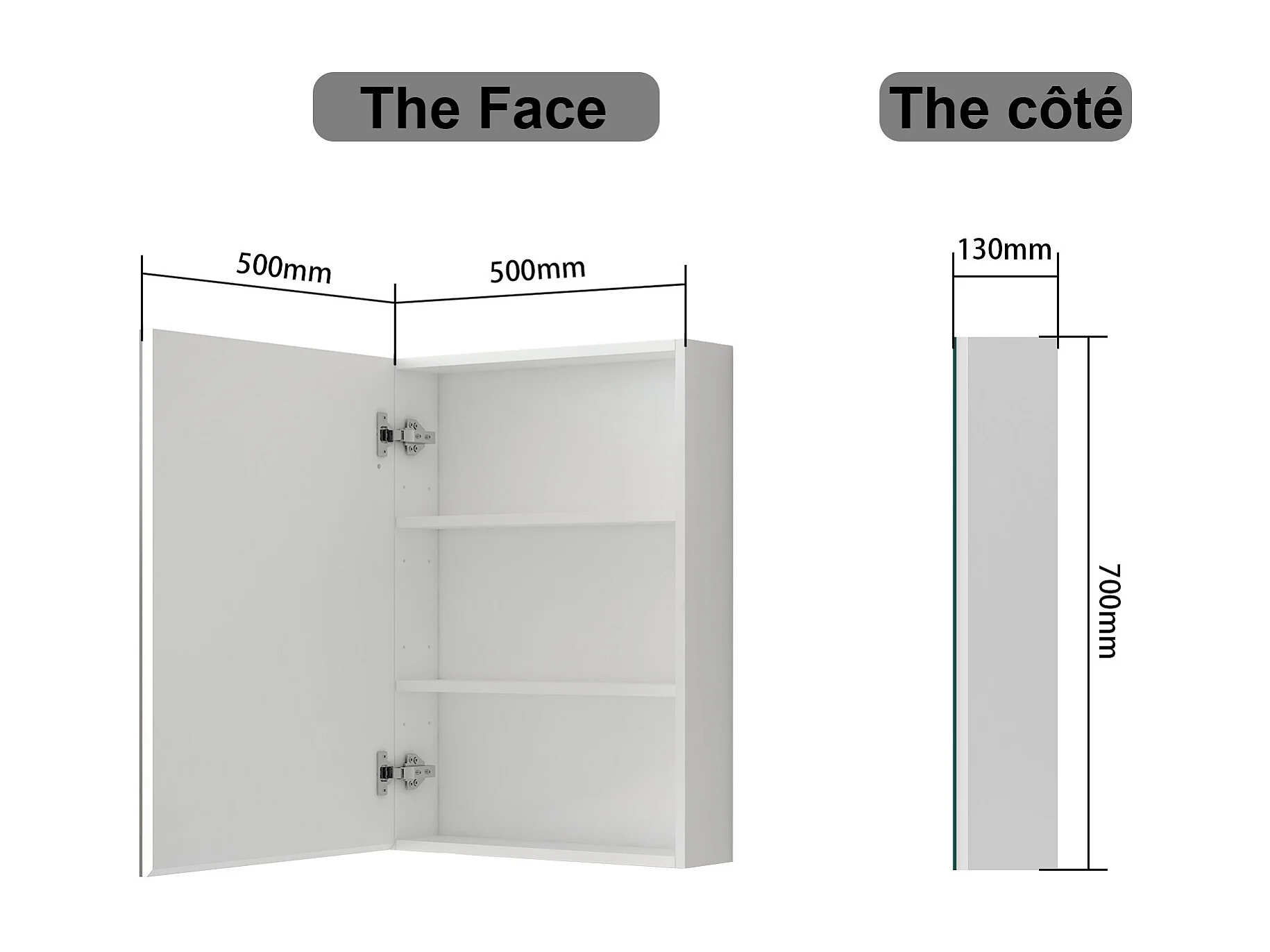 AICA Armoire murale de salle de bain, 70x50x13 cm, 3 Niveaux placard de rangement ( 2 Étagères ), Armoire de toilette, MDF sans LED, Blanc