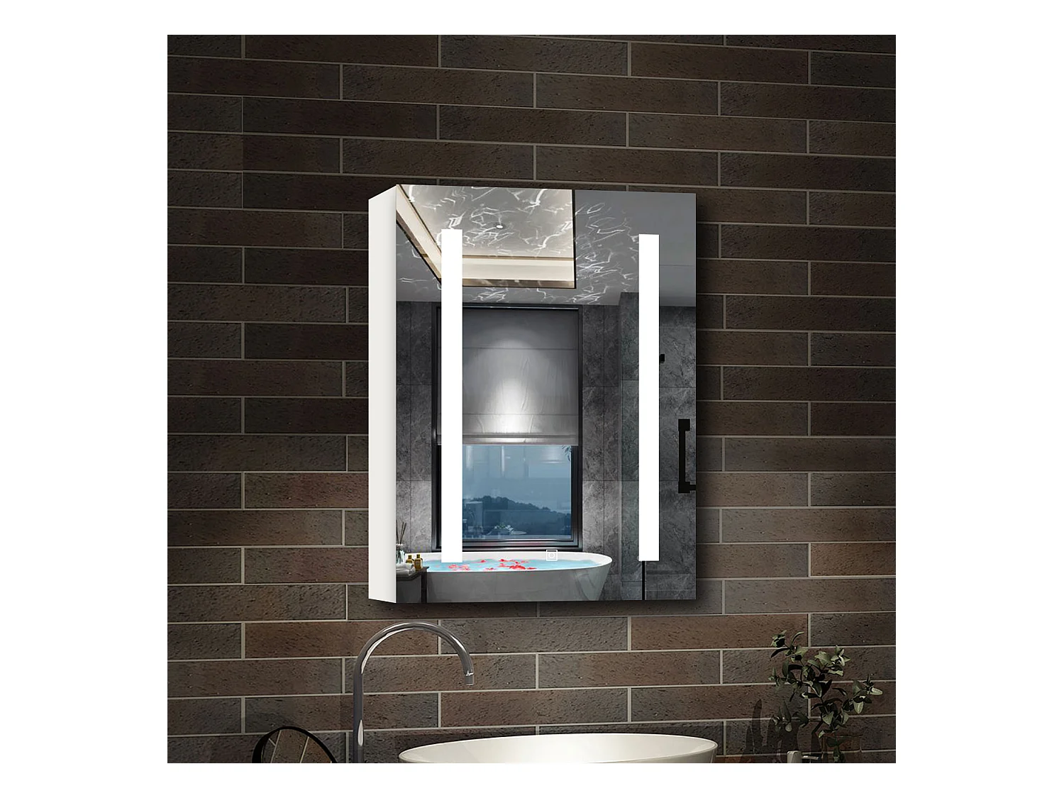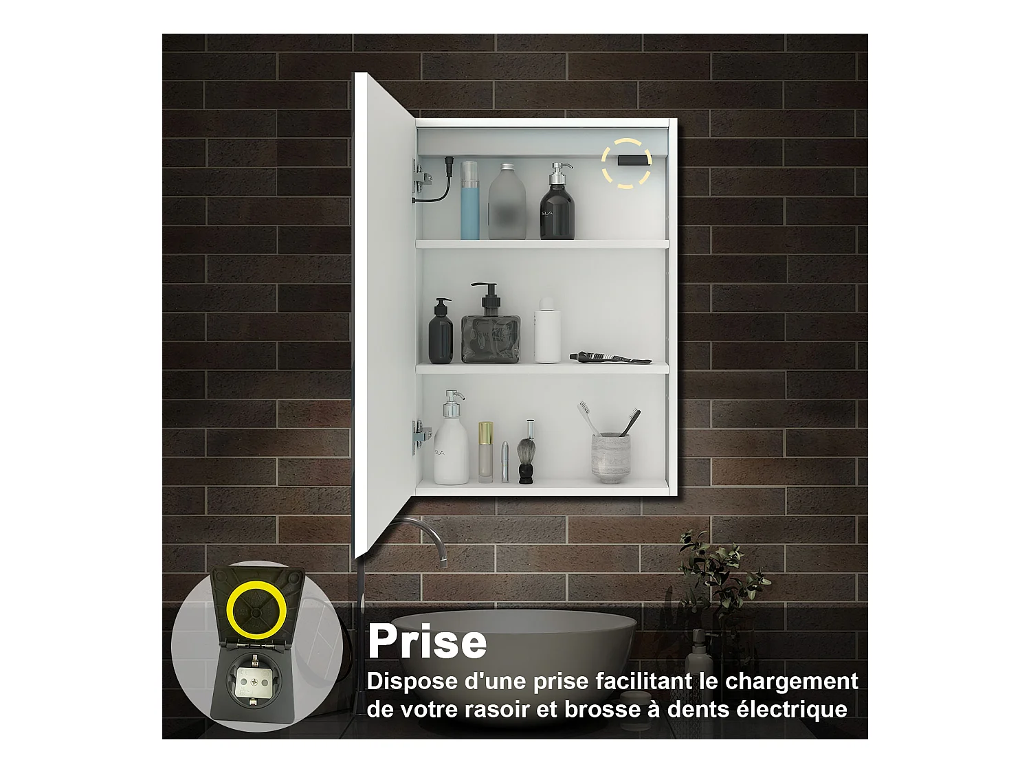 AICA Armoire murale de salle de bain LED, LED + Dimmable + Prise + Anti-Buée, 70x40cm, Blanc