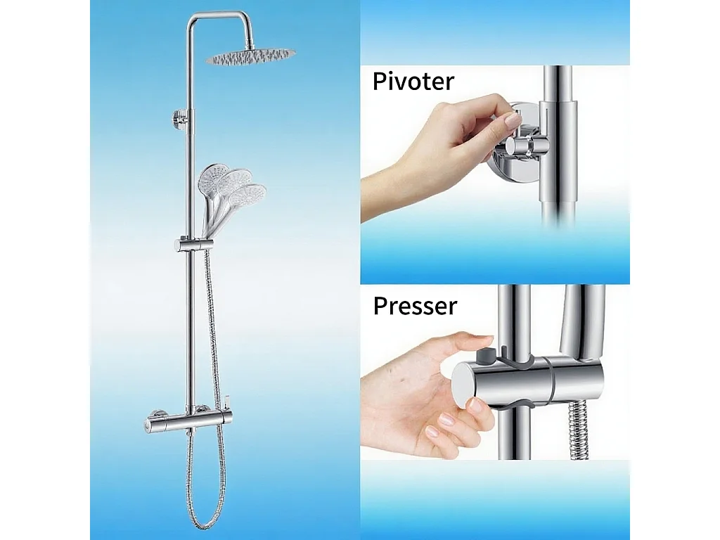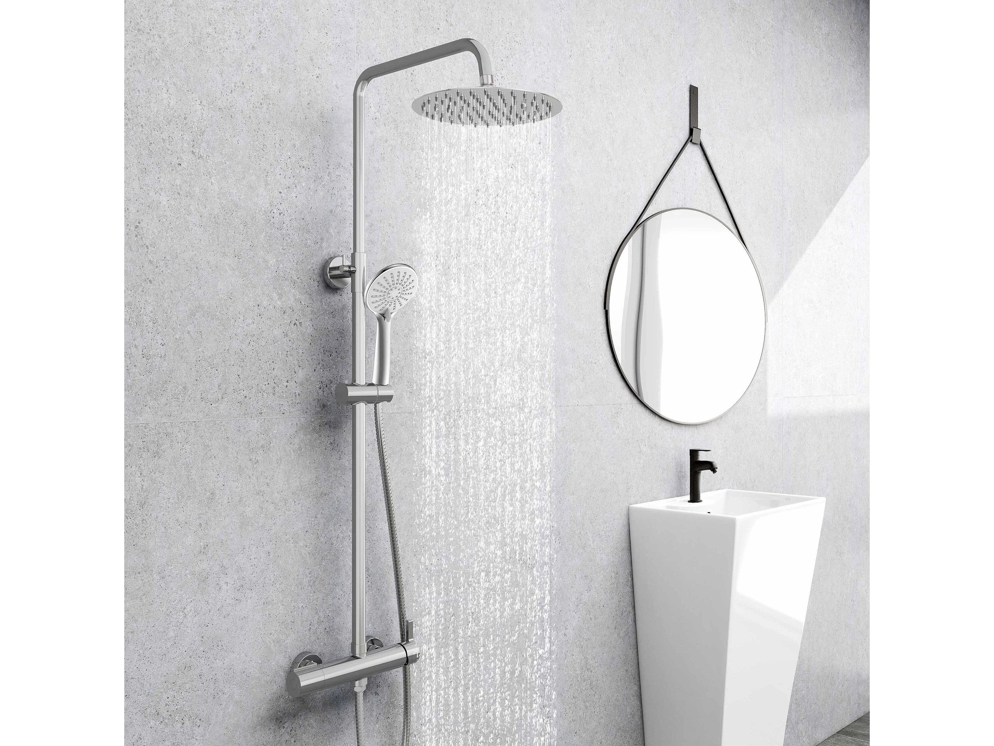 AICA Colonne de douche thermostatique en acier inoxydable, Pomme 200mm+Douchette 3 jets, Réglable en hauteur, Chromé
