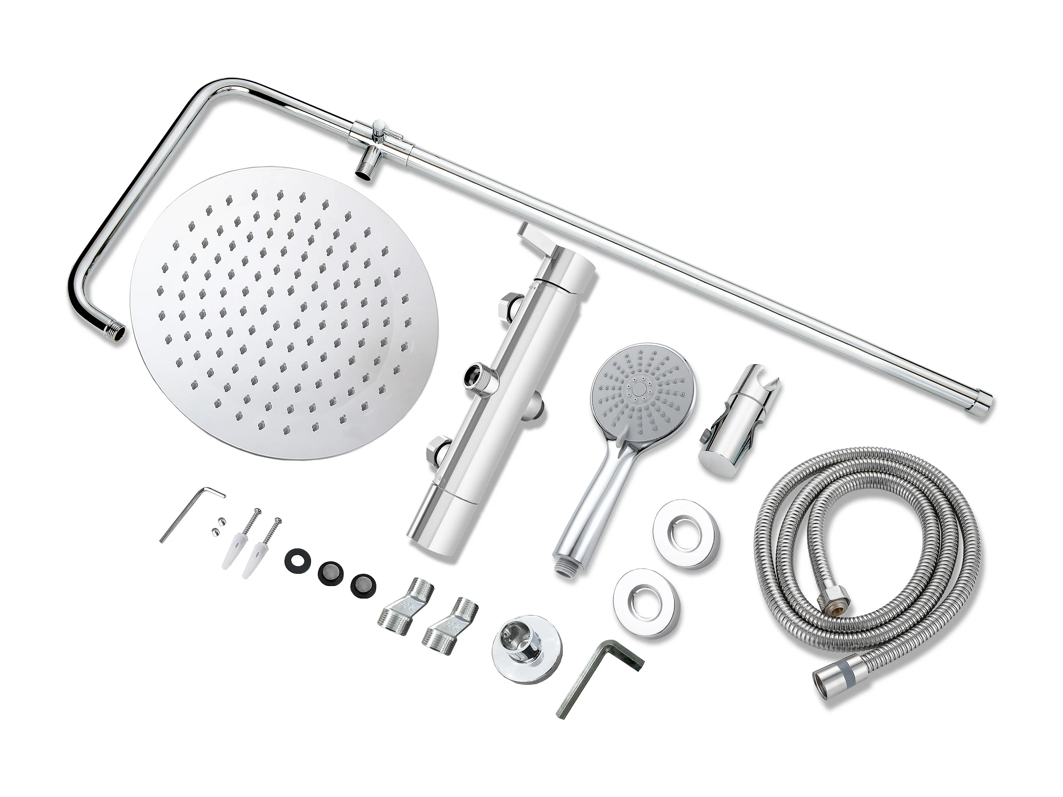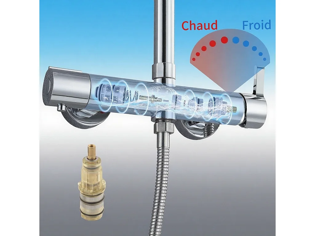 AICA Colonne de douche thermostatique chromé- Ensemble de douche en laiton- Réglable en hauteur