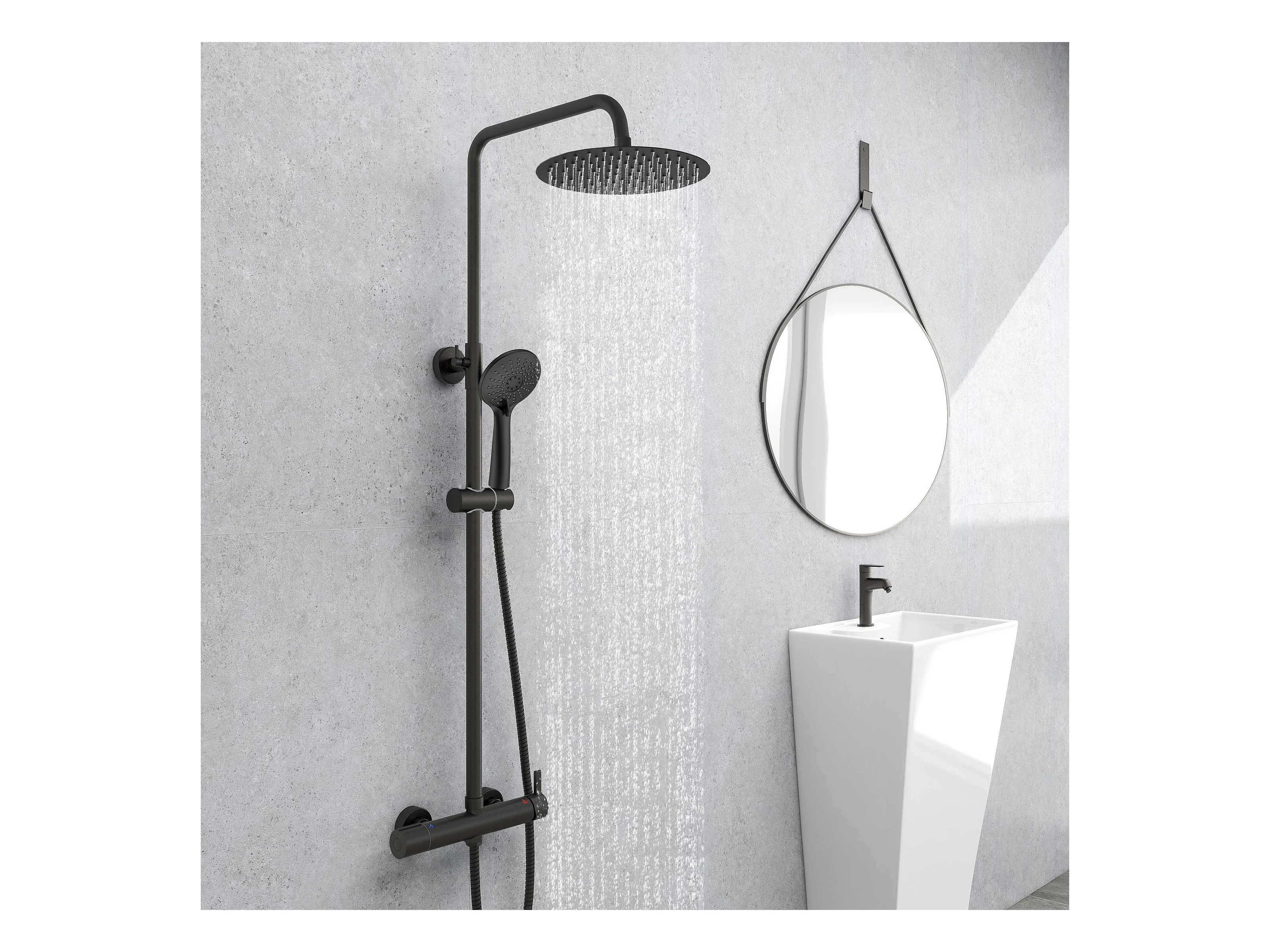 AICA colonne de douche thermostatique noir mat avec douche de tête carrée, douchette ronde à 3 jets, réglable en hauteur