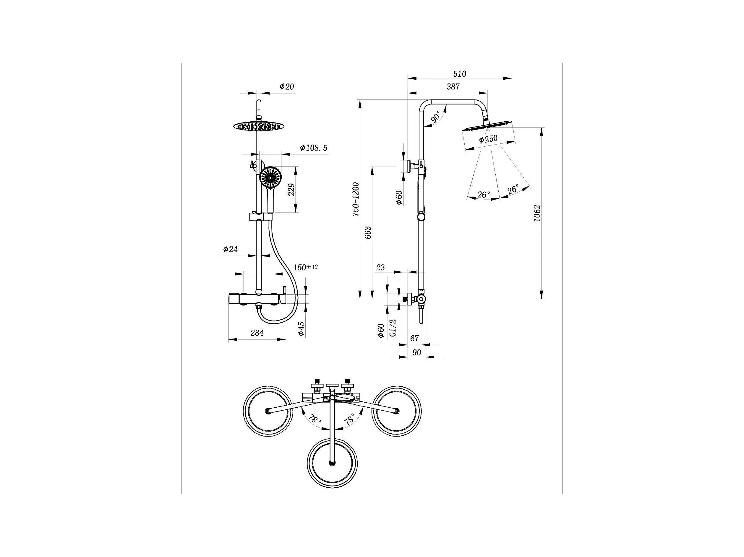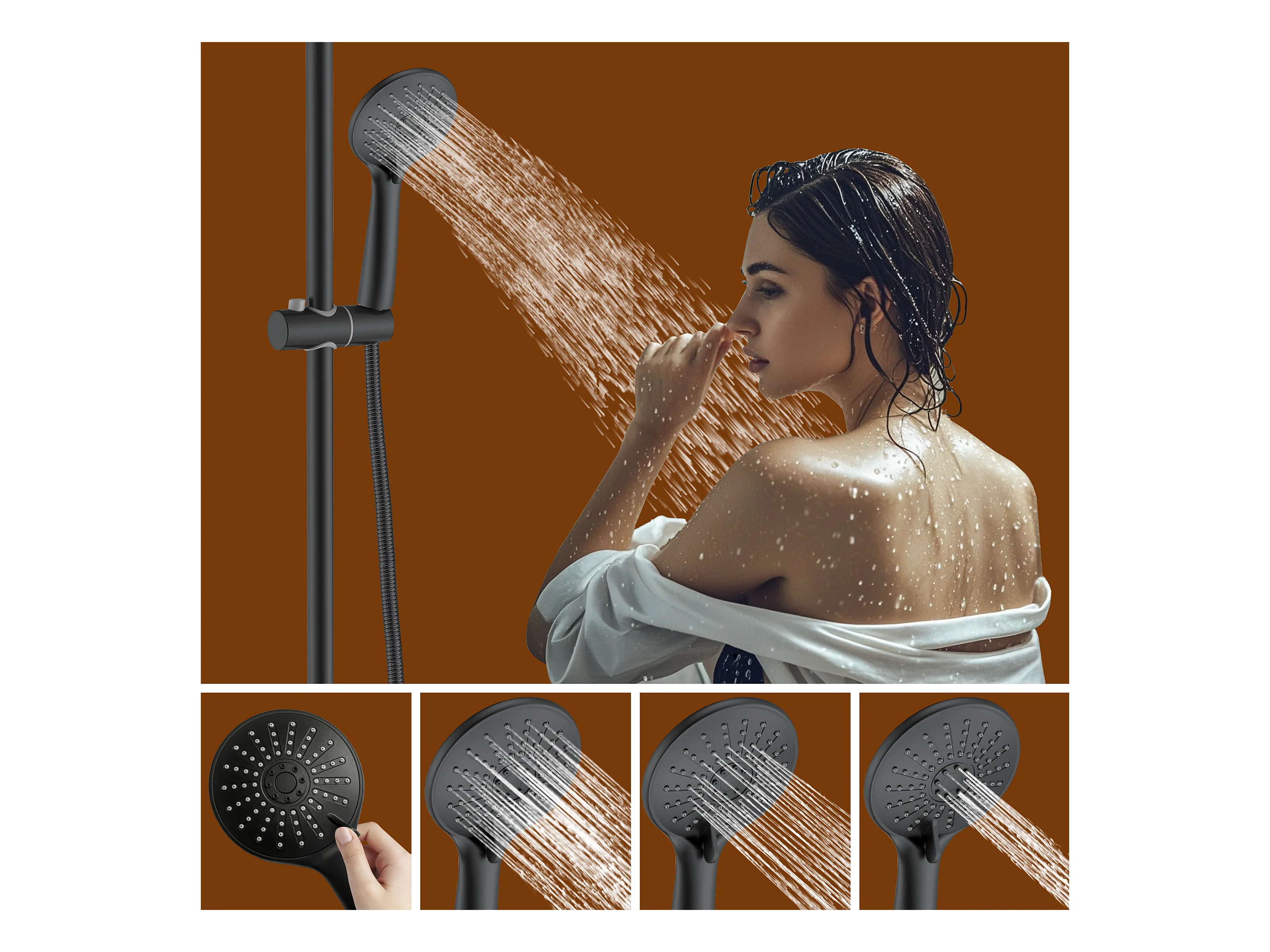 AICA colonne de douche de salle de bain avec douche de tête ronde 250 mm, douchette 3 fonctions, hauteur réglable 750-1200 mm,noir