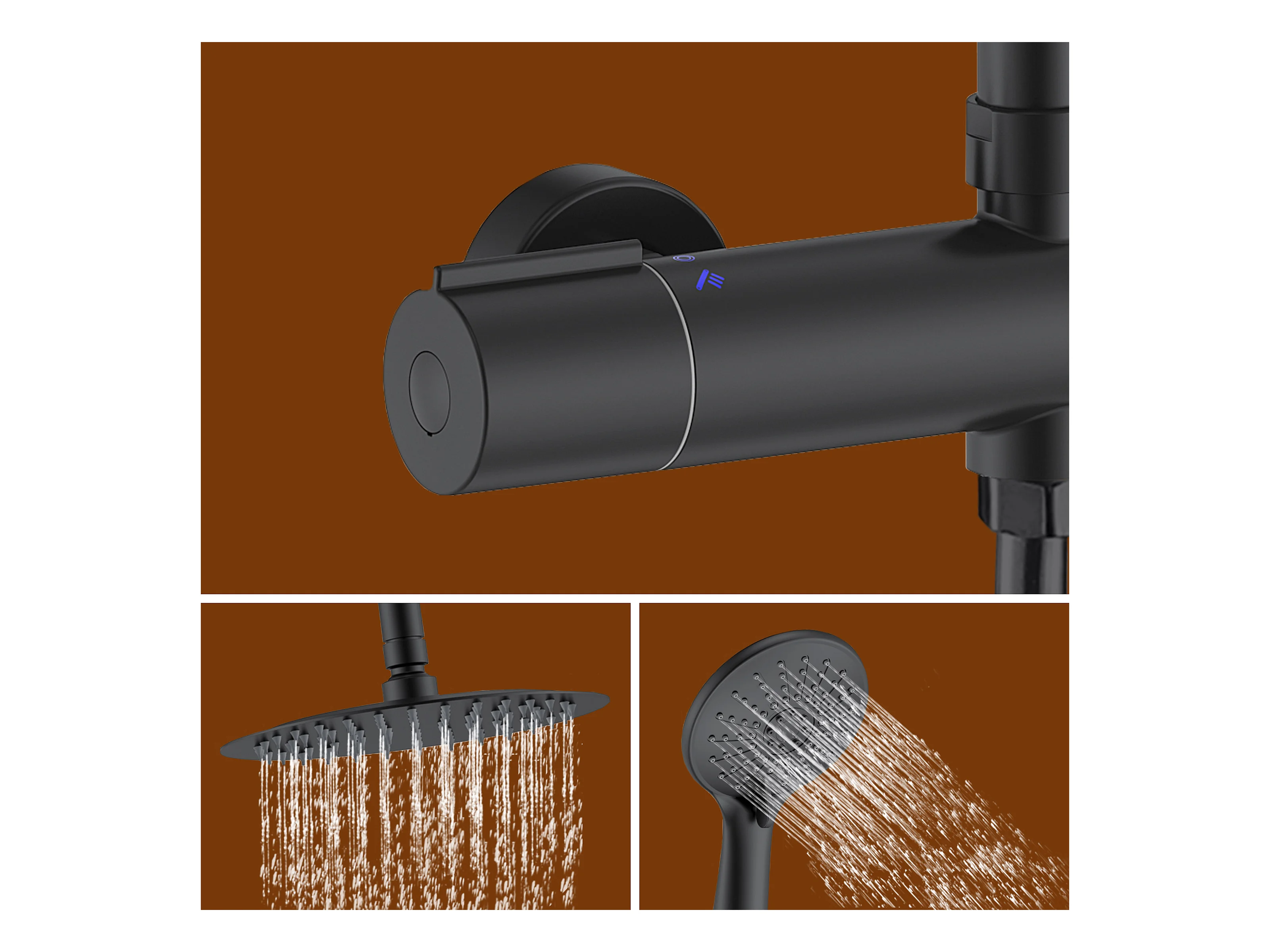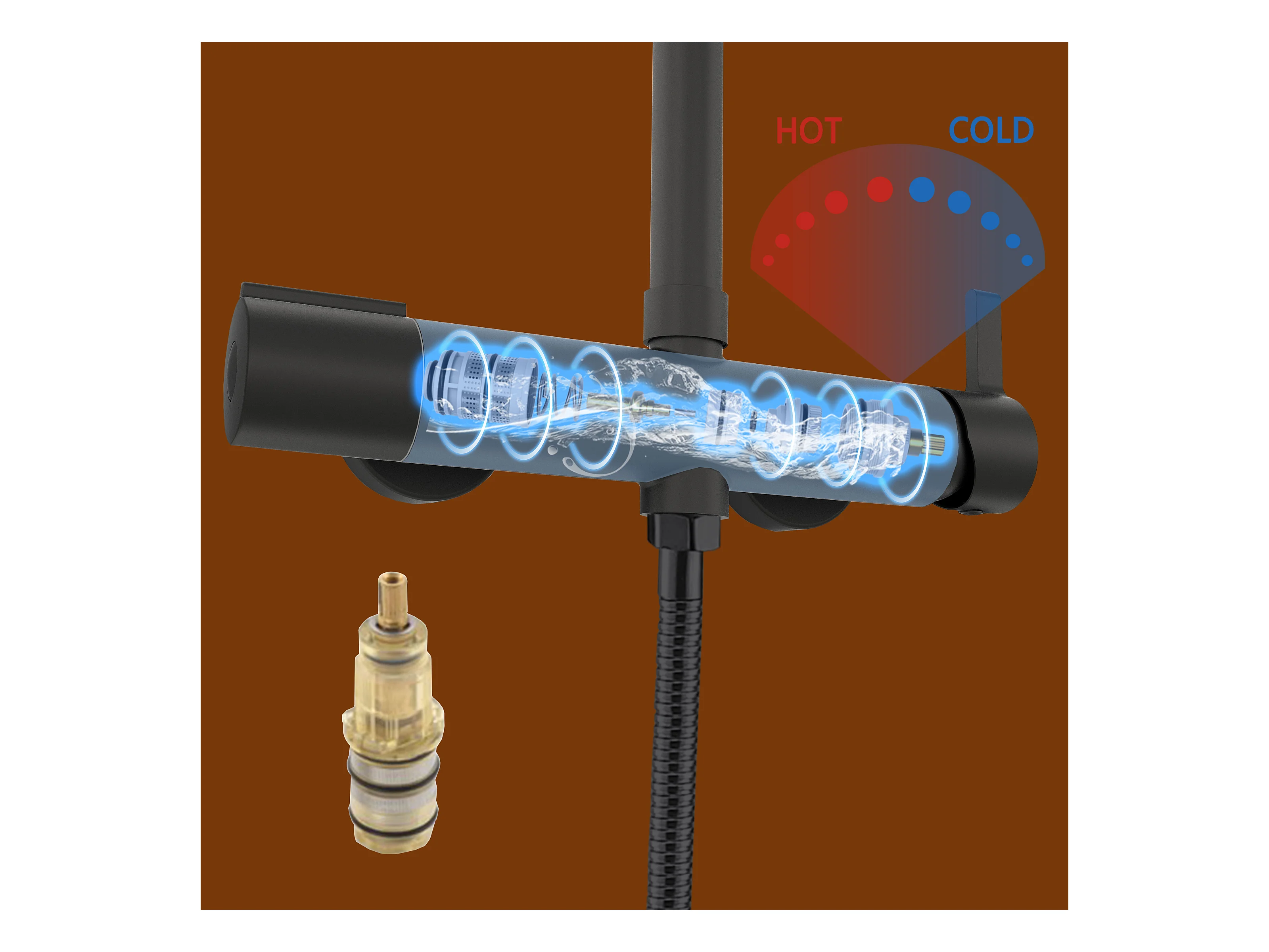 AICA Colonne de douche thermostatique en laiton, Système de douche thermostatique 38 °C, Réglable en hauteur 730-1150 mm, Noir