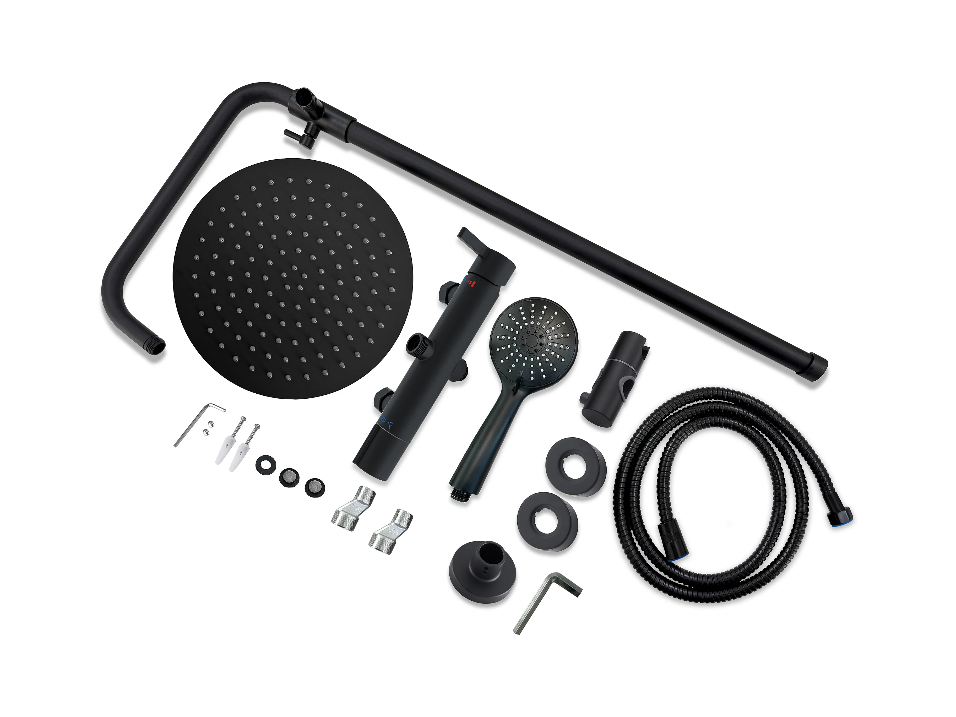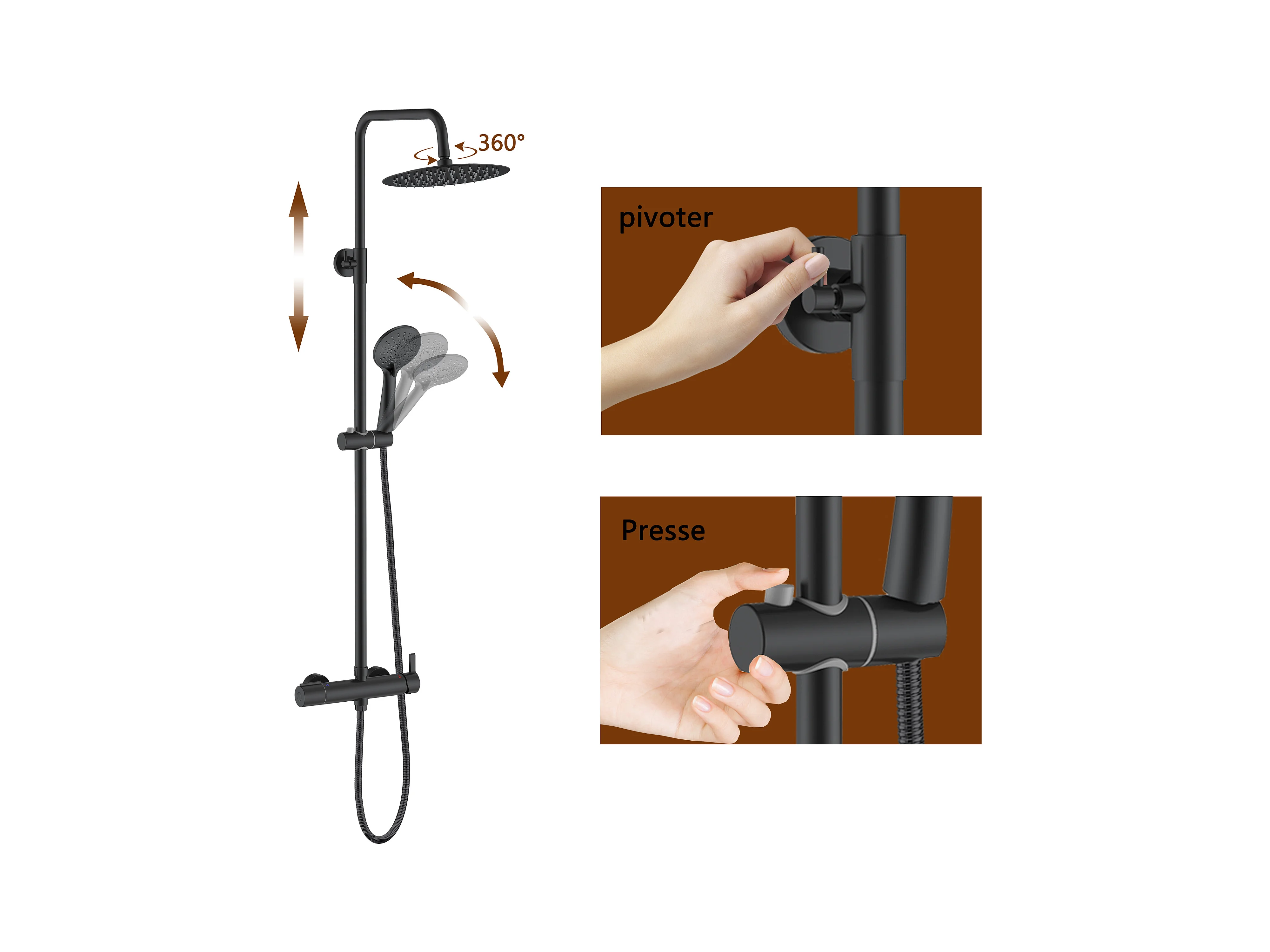 AICA Colonne de Douche Thermostaique 38 °C Ensemble de douche avec Tête de Douche de 10 Pouces Douchette 3 Jets Hauteur Réglable- Noir