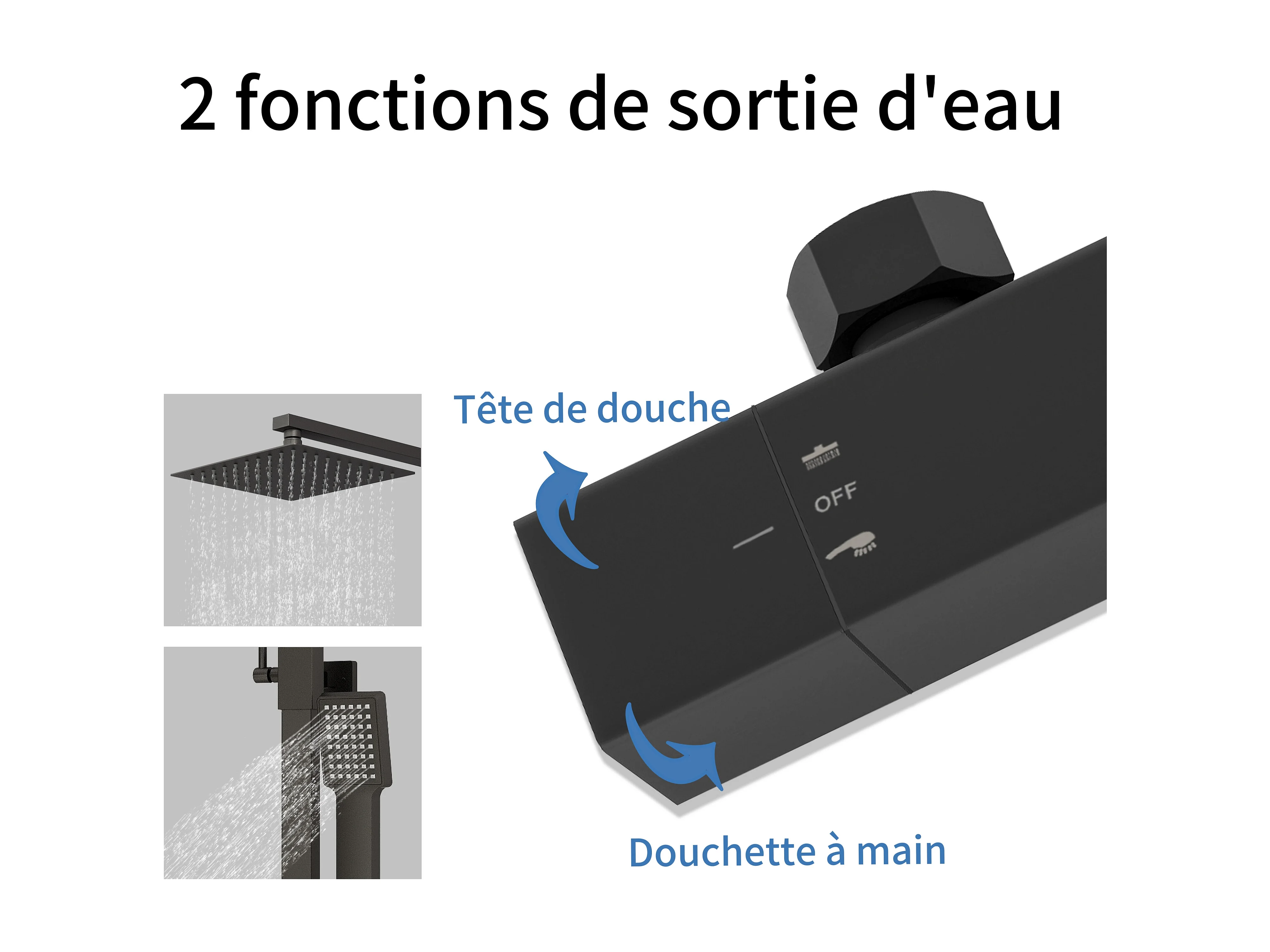 AICA colonne de douche thermostatique noir mat avec douche de tête carrée, douchette ronde à 3 jets, réglable en hauteur