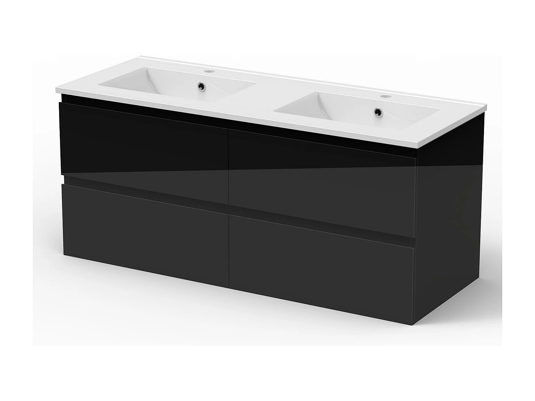 AICA Ensemble de meubles de salle de bain 120cm avec double vasque , Brillance, Noir