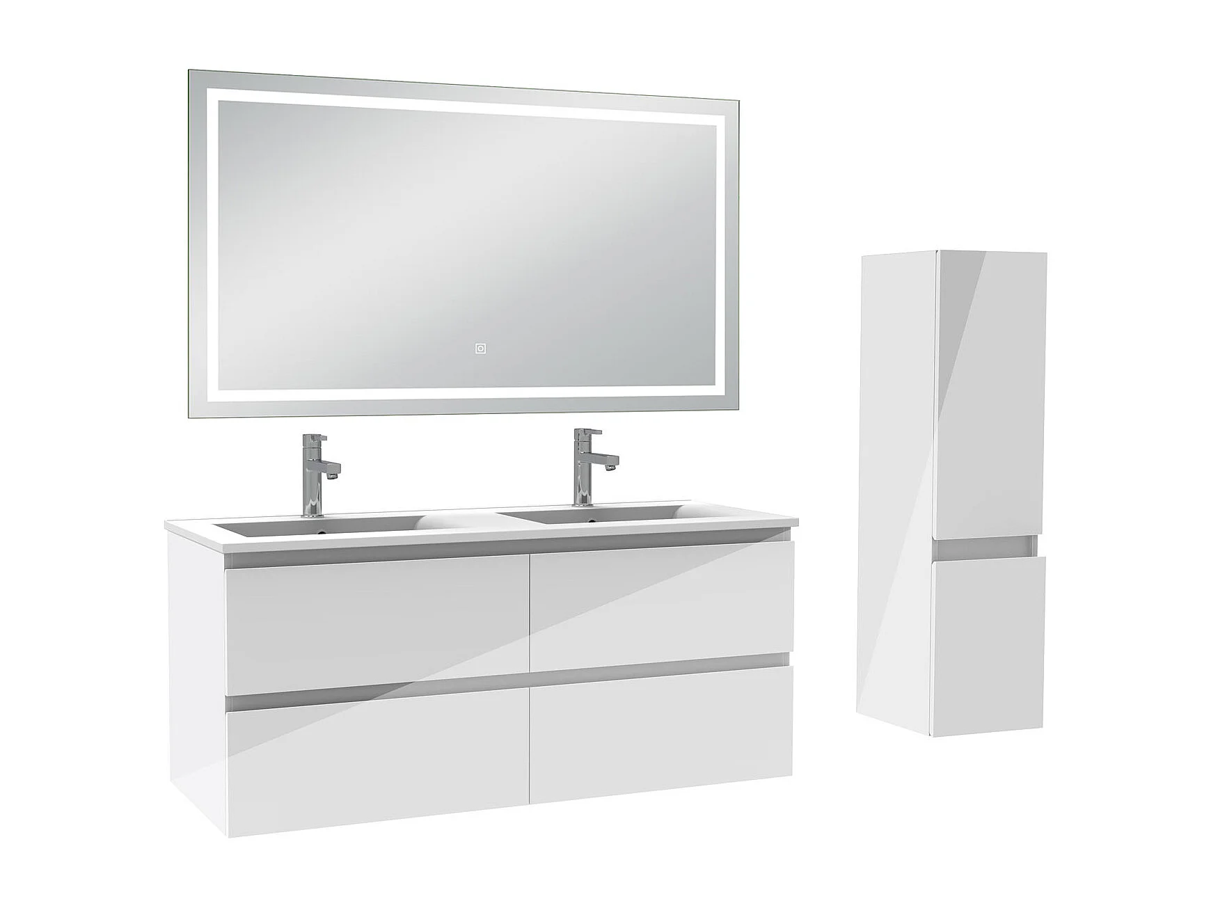 AICA Ensemble de meubles de salle de bain 120cm Vasque céramique + meuble haut + miroir lumineux tricolore, Suspendu, Brillance, Blanc