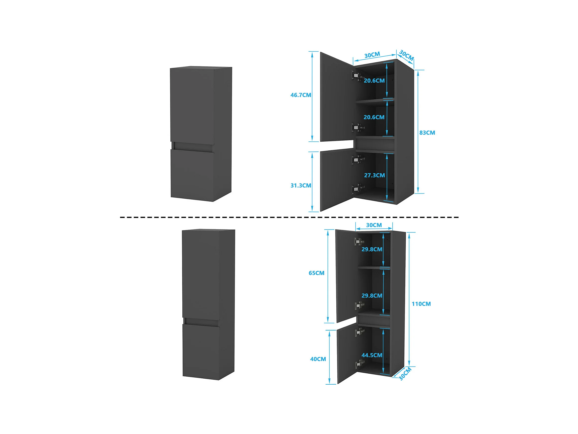 AICA Ensemble meuble de salle de bain Vasque L.99cm 2 tiroirs + lavabo + LED Miroir Rond 90cm + 2*Colonne, Anthracite