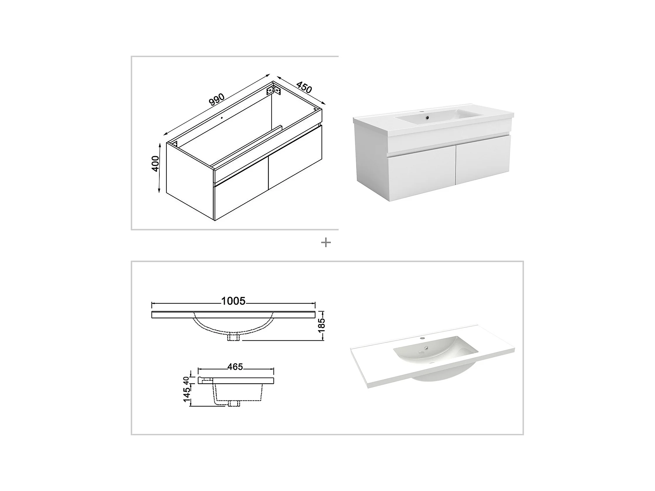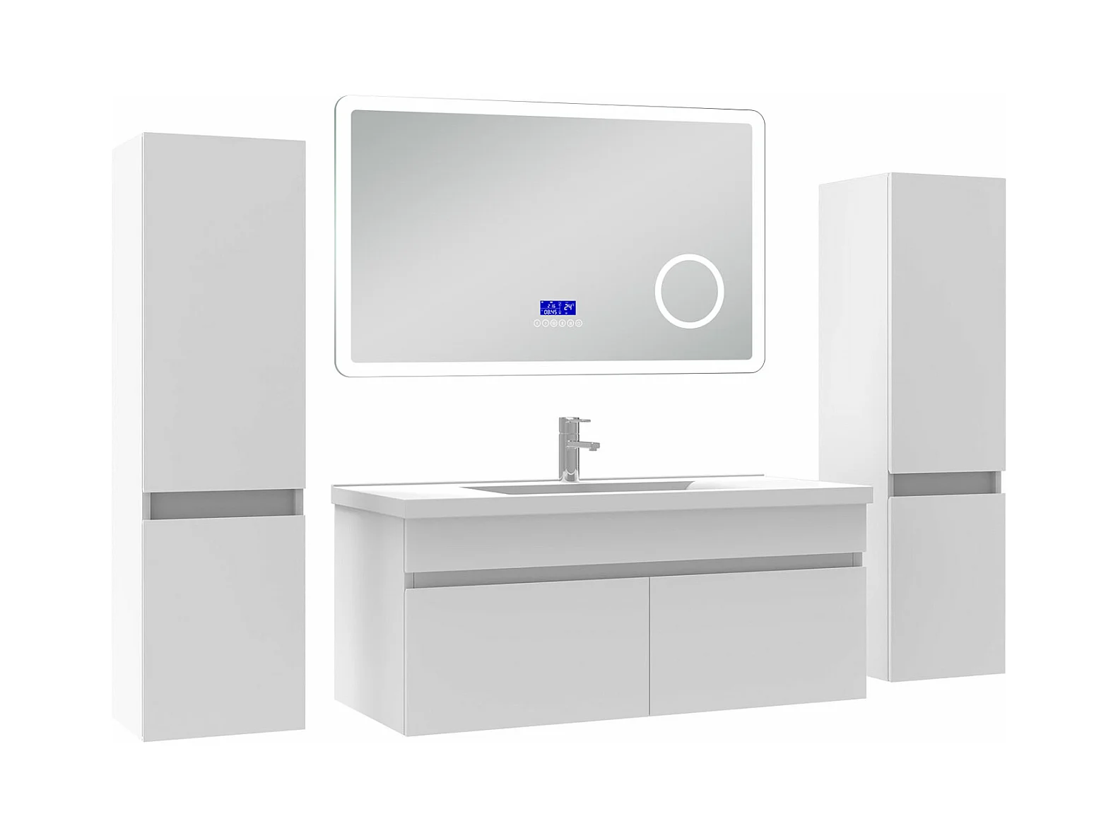 AICA Ensemble meuble Salle de Bain 100cm blanc avec 2 colonnes, simple vasque et Led miroir dimmable avec 3 couleurs, Bluetooth et 3X grossissement.
