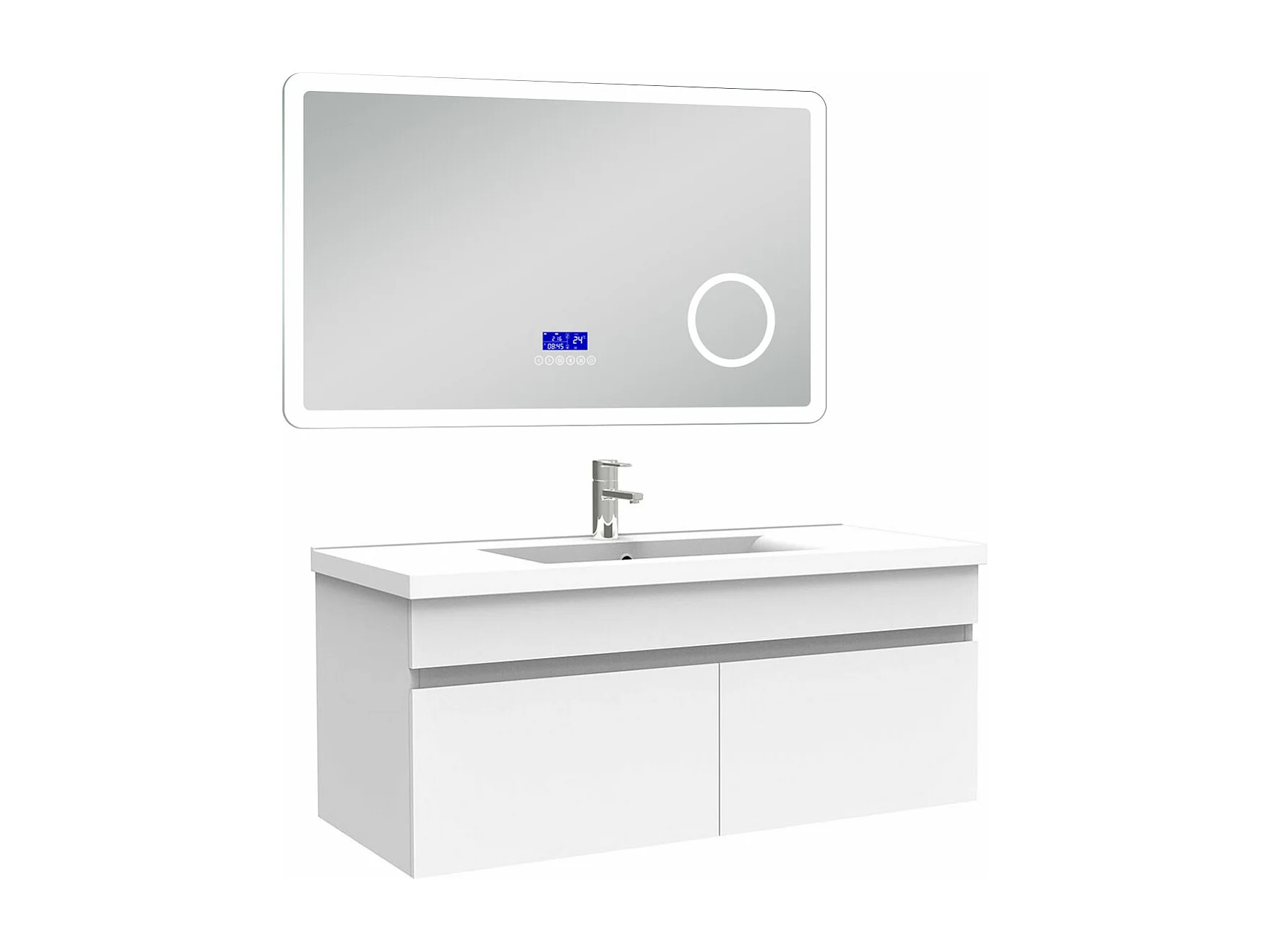 AICA Ensemble meuble Salle de Bain 100cm blanc avec simple vasque et Led miroir dimmable avec 3 couleurs+Bluetooth+3X grossissement