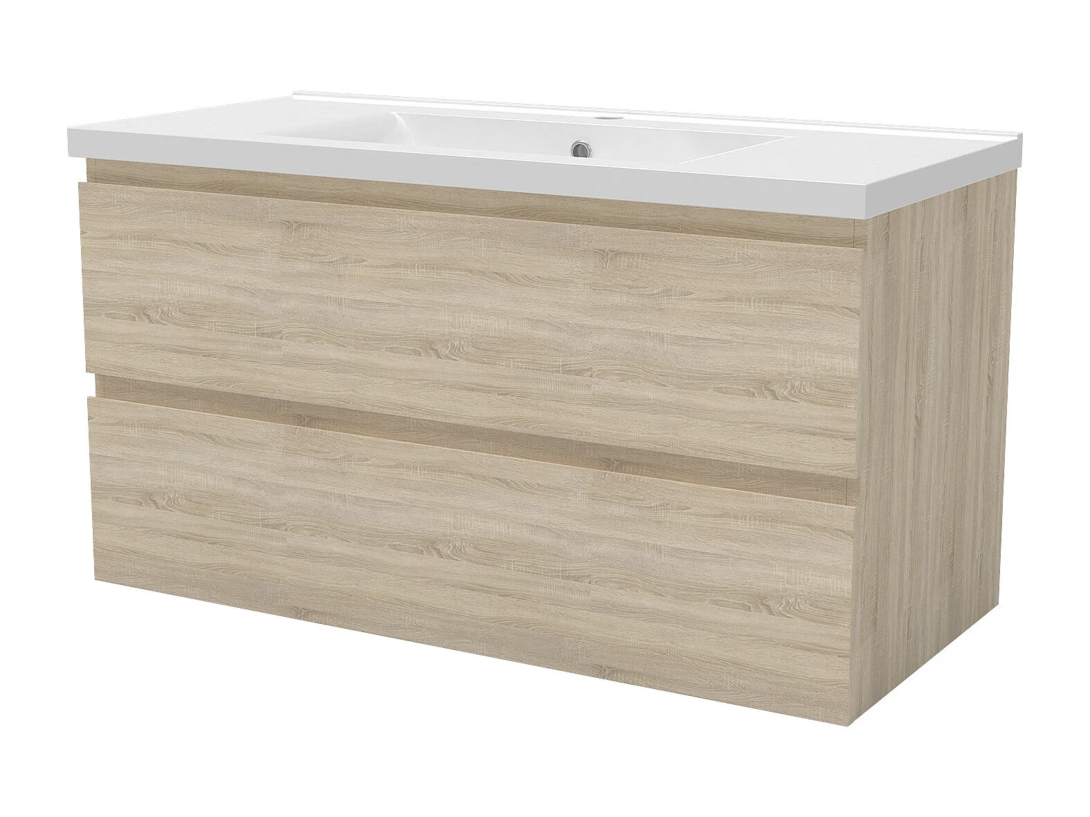 AICA Ensemble meuble Salle de Bain 100cm Chêne Wotan avec simple vasque et Led miroir dimmable avec 3 couleurs+Bluetooth+3X grossissement