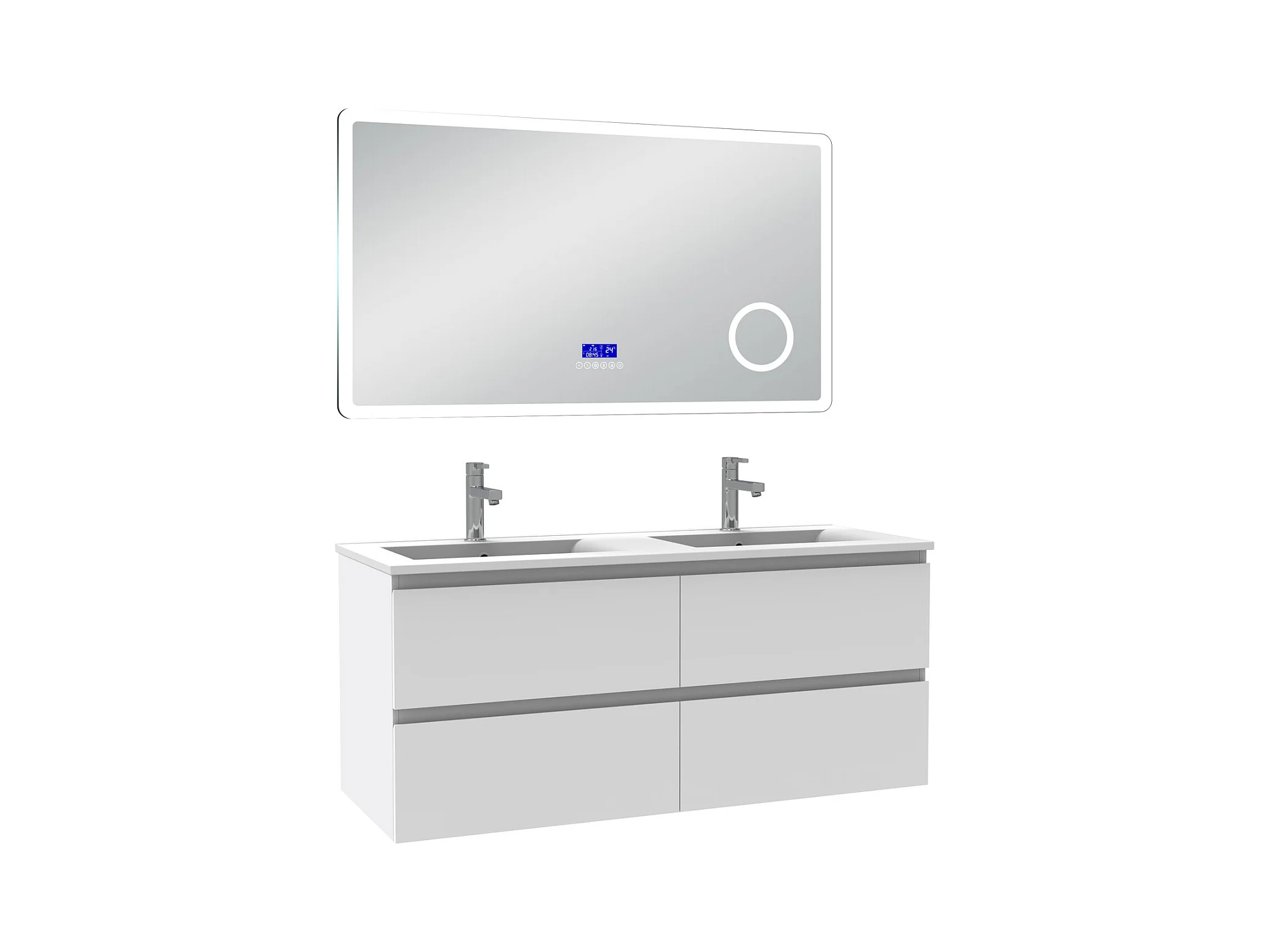 AICA Ensemble meuble Salle de Bain 120cm blanc avec double vasque et Led miroir dimmable avec 3 couleurs+Bluetooth+3X grossissement