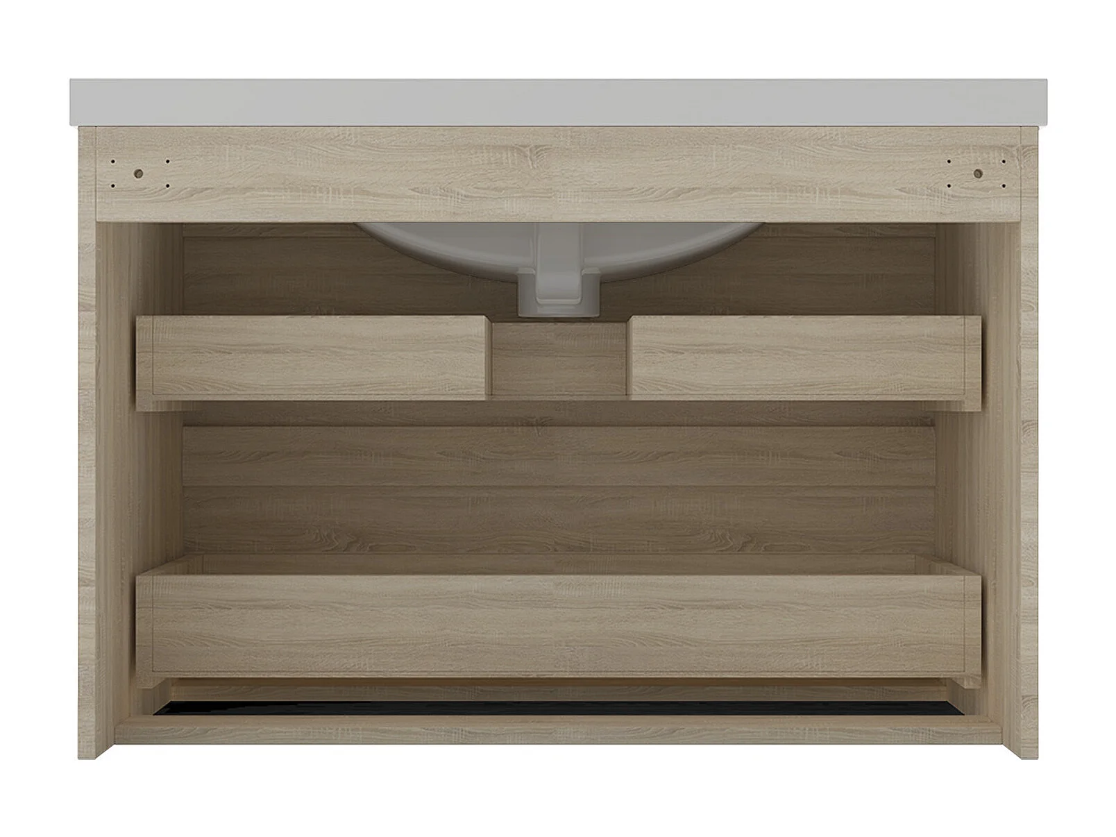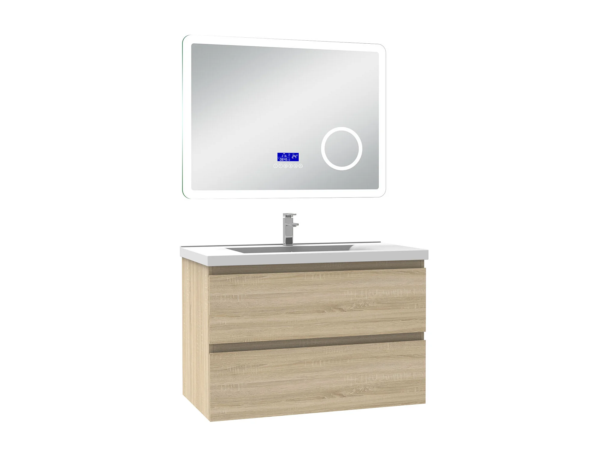 AICA Ensemble meuble Salle de Bain 80cm Chêne Wotan avec simple vasque et Led miroir dimmable avec 3 couleurs+Bluetooth+3X grossissement
