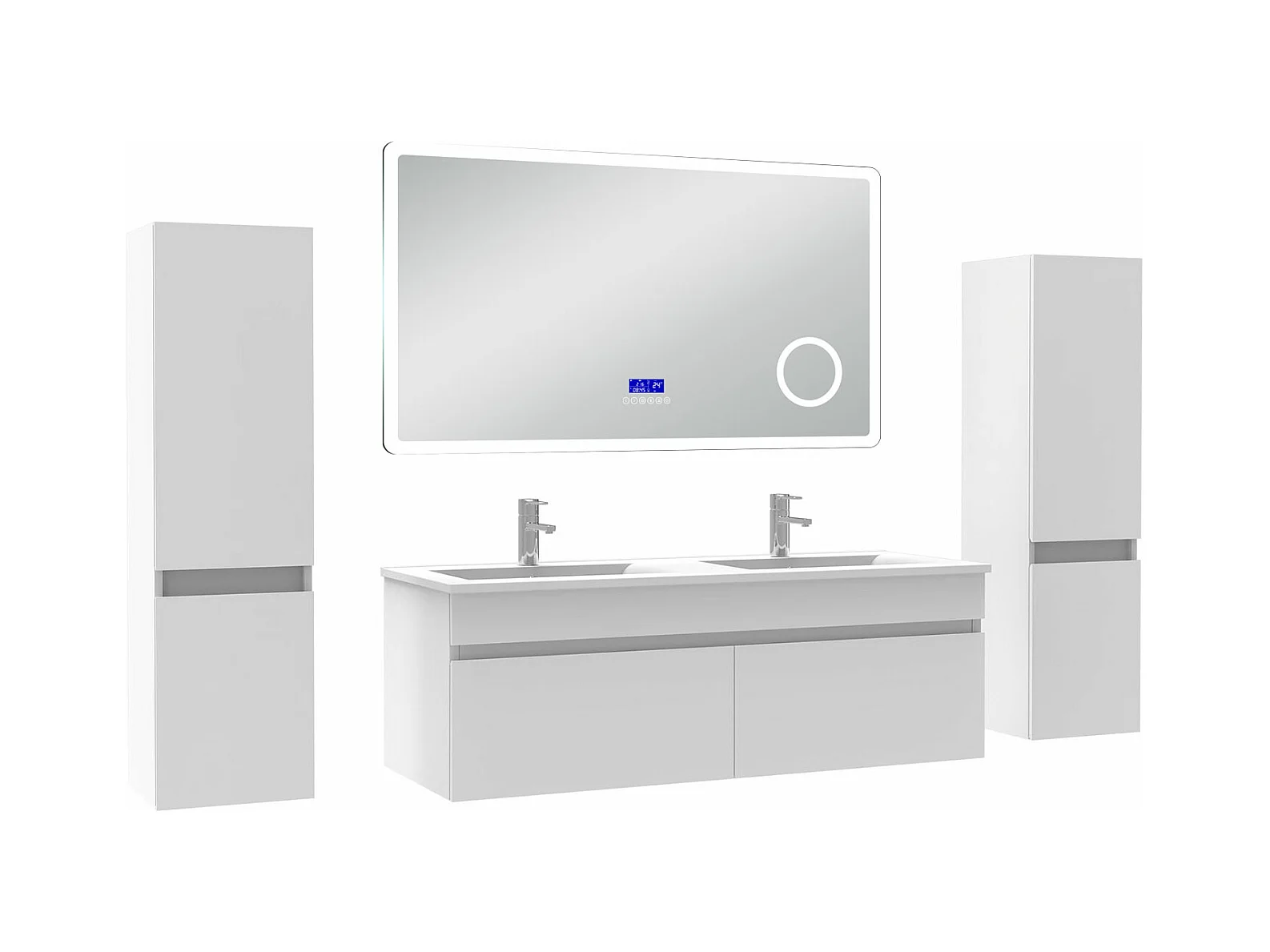 AICA Ensemble meuble Salle de Bain Anthracite 120cm avec 2 colonnes, double vasque et Led miroir dimmable avec 3 couleurs, Bluetooth et 3X grossissement.