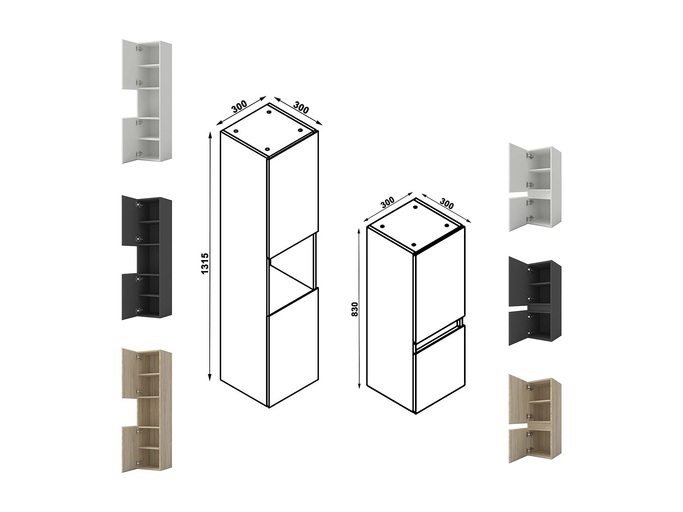 AICA Ensemble meuble Salle de Bain Chêne Wotan 120cm avec 2 colonnes, simple vasque et Led miroir dimmable avec 3 couleurs, Bluetooth et 3X grossissement.