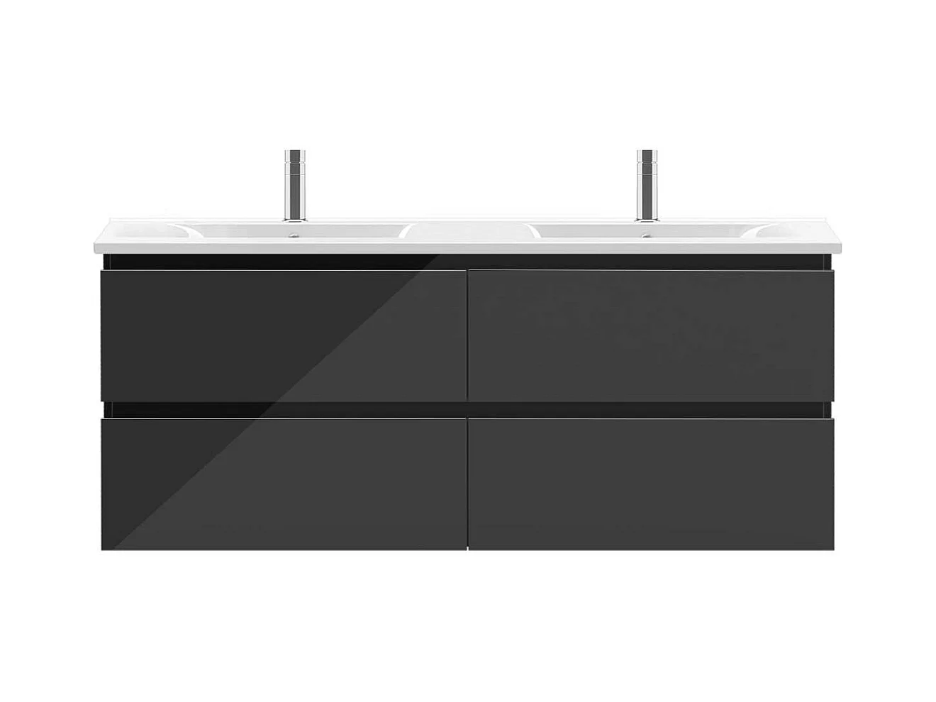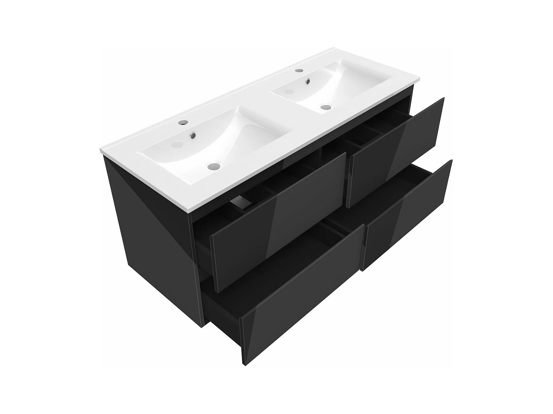 AICA Ensemble Meuble salle de bain noir 120cm avec double vasque en céramique,meuble 4 tiroirs